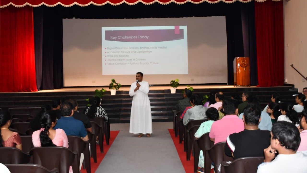 Fr. Vinay Kumar, Karnataka Regional Secretary for the Interreligious Dialogue Commission, served as the resource person for the event. In his address, he highlighted the role of the family as a “Domestic Church”, the importance of nurturing children’s spiritual quotient, and practical ways to integrate Gospel values into modern Catholic parenting. He also emphasised the significance of interreligious co-living in India’s pluralistic society, providing parents with valuable insights and strategies to promote harmony and mutual understanding with people of other faiths.