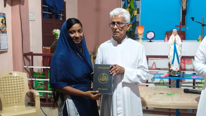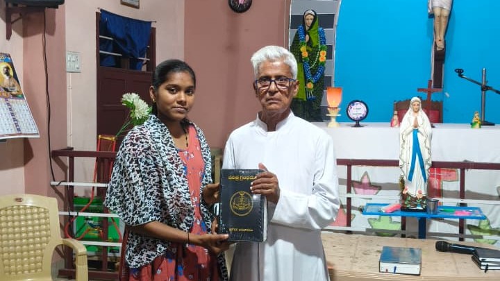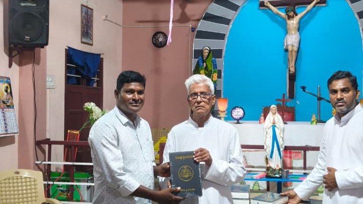 Amalapuram, Andhra Pradesh, Sept. 3, 2025: 100 Catholic families belonging to Immaculate Conception Church in Amalapuram, a parish under the Diocese of Eluru, received Telugu copies of the Holy Bible on Sunday, August 31, as part of the “A Bible for Every Home” campaign. The distribution was carried out by Fr. Alfonso Elengikal, SSP, a member of the Society of St. Paul (Pauline Congregation), who personally visited families across the parish’s eight villages.