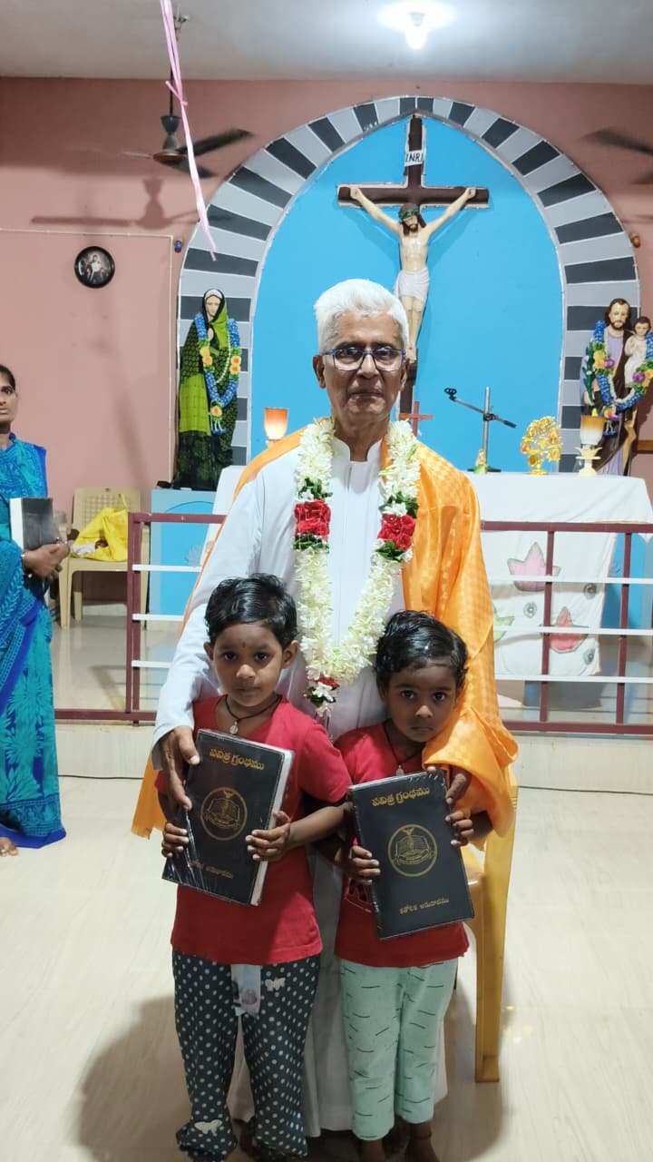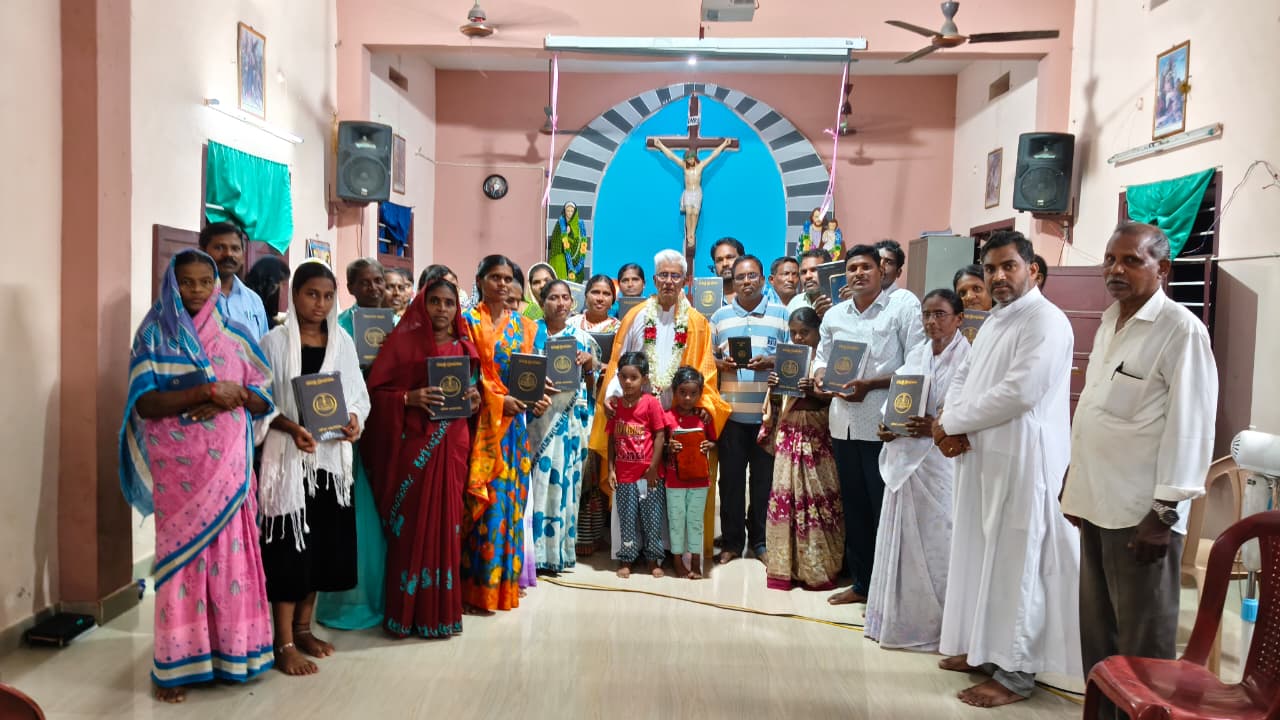 The first parish to benefit from the “A Bible for Every Home” campaign was Lourdu Matha Shrine Parish, Thadikalapudi, where all 550 families across 10 villages received Bibles. To strengthen the initiative, a Central Office was inaugurated in February 2023 at Subodha Nilayam by Fr. Domenico Soliman, SSP, Superior General. This office now coordinates Bible distribution across the dioceses of Eluru and Khammam and makes related literature in Telugu available at affordable prices.