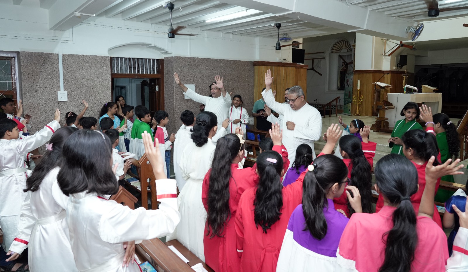Vasai, Feb. 13, 2025 – St. Thomas Parish, Sandor, Vasai, hosted an Altar Servers Rally and Commissioning Ceremony on February 9, to encourage children to serve at the altar and become part of the liturgical ministry. The event, presided over by Fr. Raymond Rumao, parish priest of St. Thomas Parish, included a special Holy Mass and the commissioning of new altar servers in the presence of their parents. The ceremony also honoured senior altar servers who had dedicated their time to the ministry in previous years.