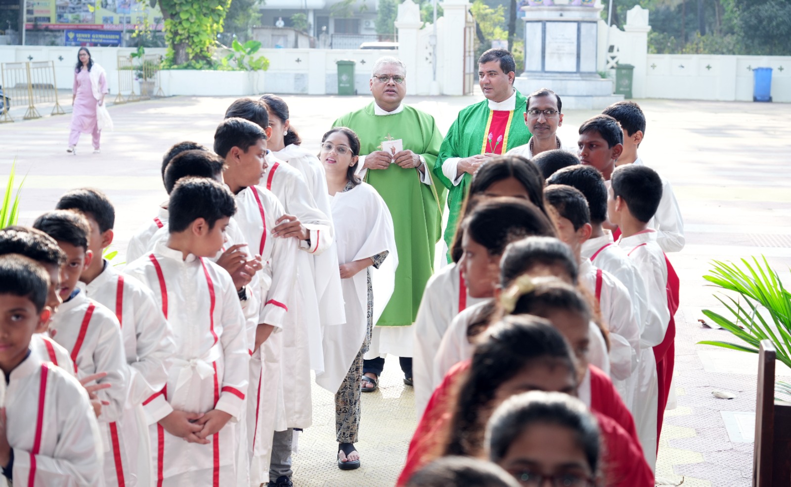 The ceremony began with a solemn procession, during which the altar servers to be commissioned entered the church. This was followed by the celebration of the Holy Mass by Fr. Raymond, along with Fr. Sanjay Ferreira and Fr. Stephen Machado, all of whom serve in the same parish.