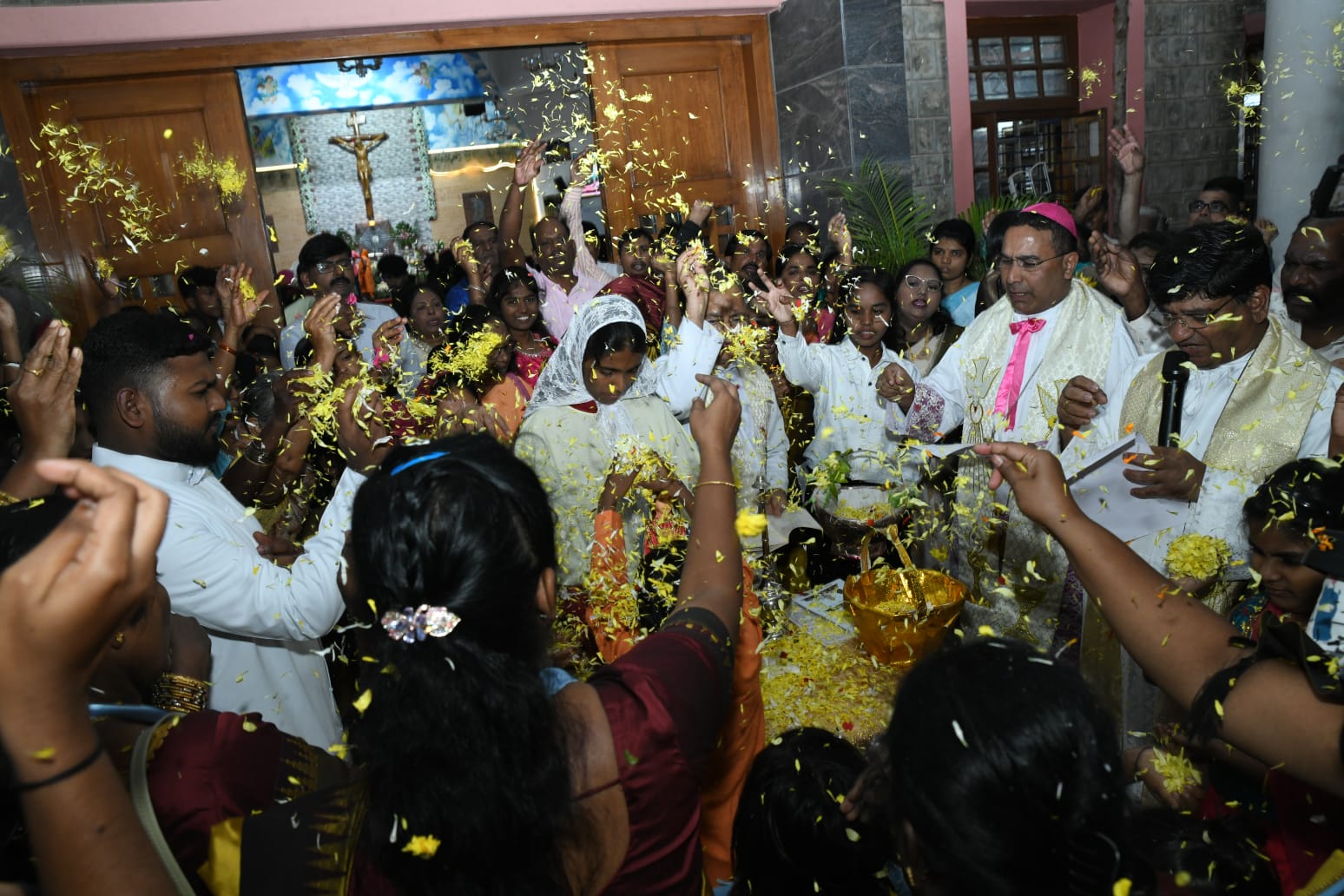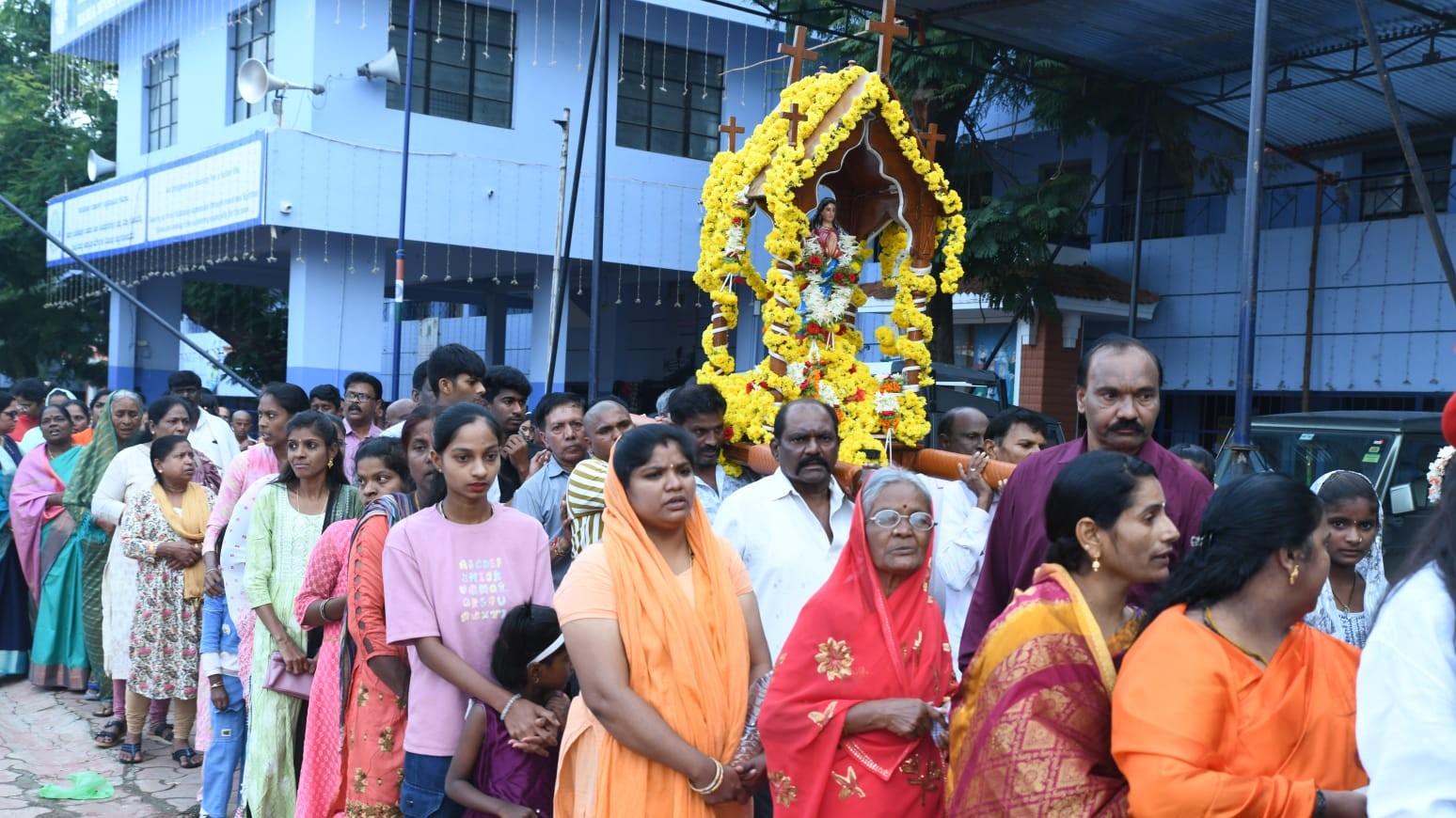 Thousands of devotees from across Karnataka and neighbouring states thronged the Basilica, many dressed in saffron attire, as a mark of faith and tradition. The sheer inflow of pilgrims led to heavy traffic congestion across the city, underlining the scale of devotion to Harihar Matha.