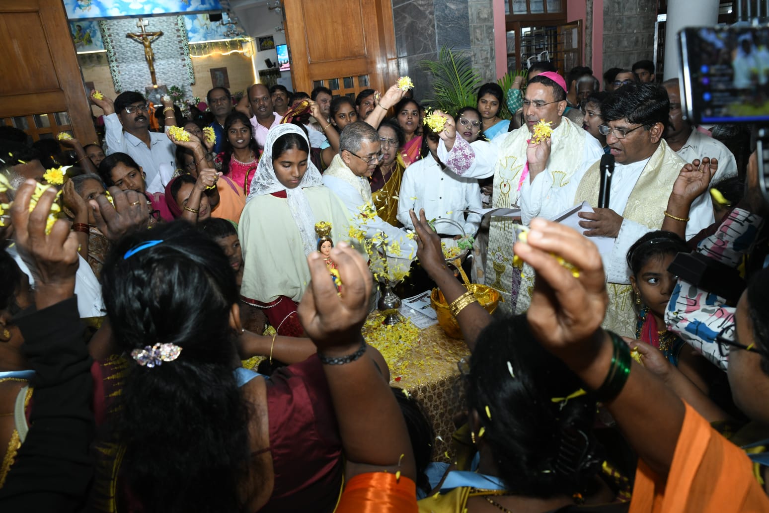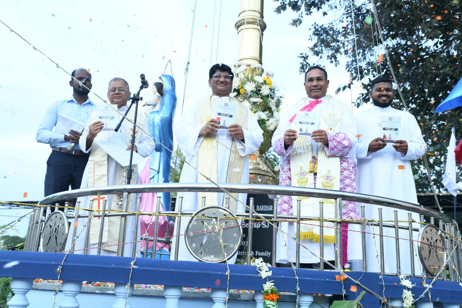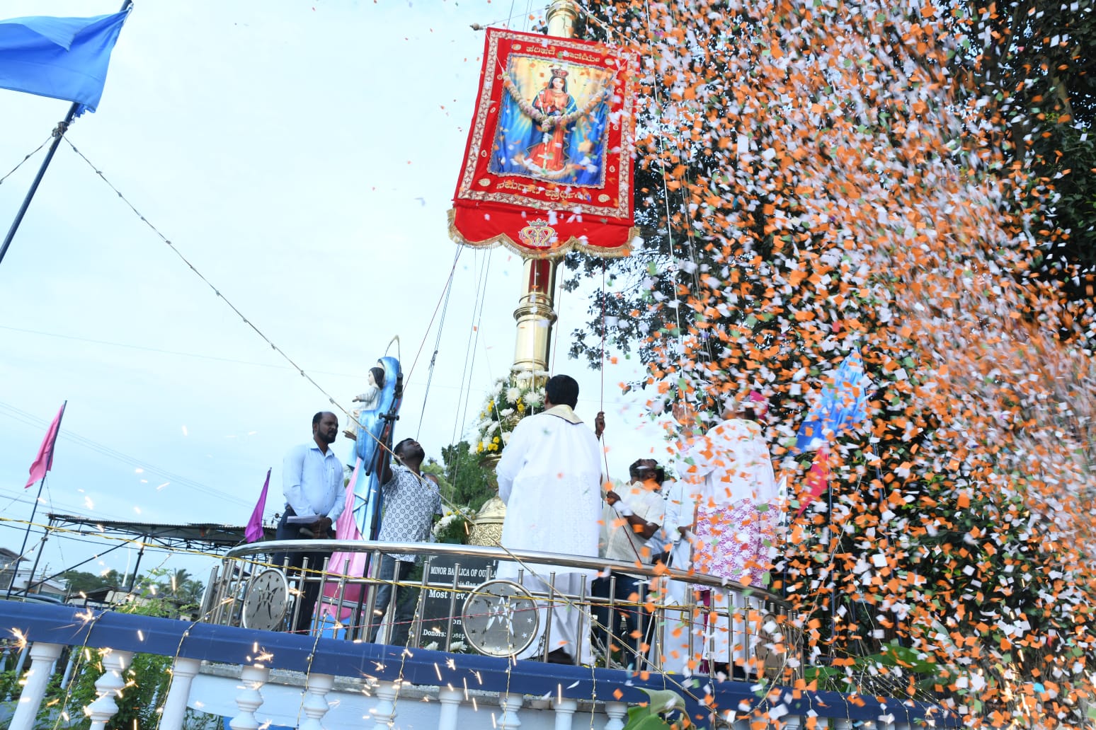 Dr. Duming Dias, Bishop of the Diocese of Karwar, inaugurated the nine-day festivities by hoisting the flag. The Basilica Rector, Fr. George K. A., welcomed the Bishop and the faithful gathered for the occasion.