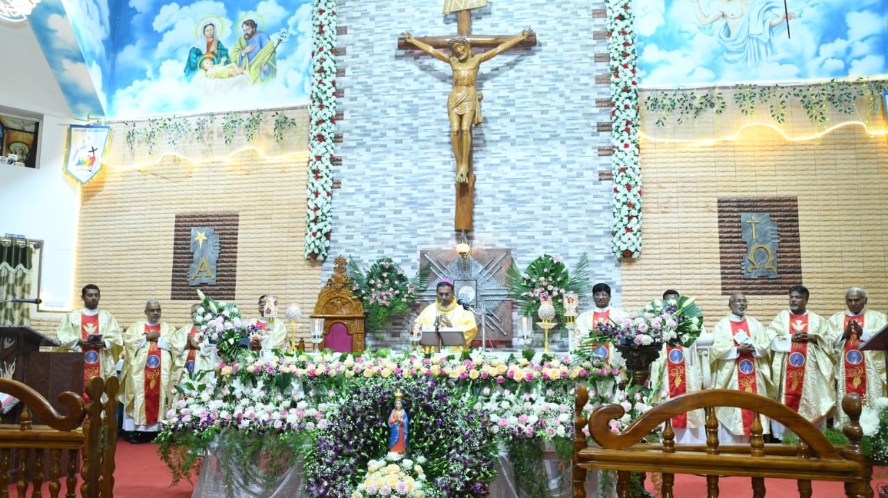 In his message, Bishop Dias urged the devotees to embrace the values of Mother Mary, describing her as the one who wipes the tears of the distressed. “Mother Mary – Our Mother of Hope” was the theme of his homily during the solemn high Mass, concelebrated by several diocesan priests.