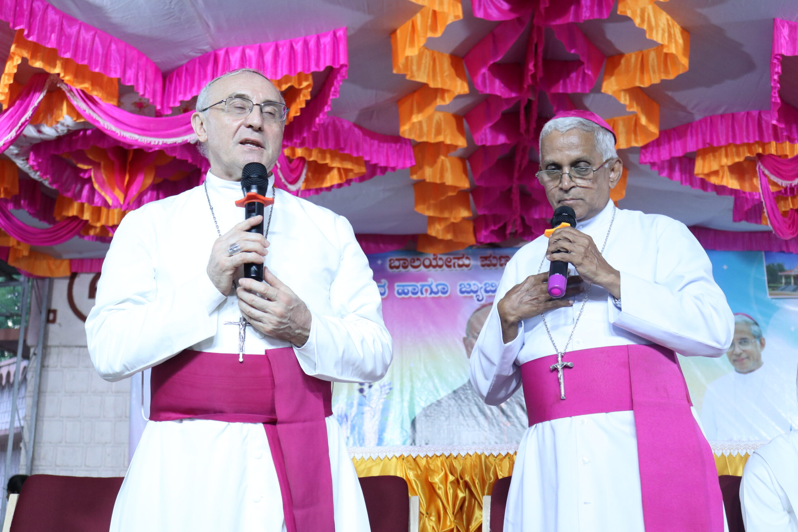 Following the Eucharist, a short felicitation programme was held in honour of the Nuncio. During the ceremony, Bishop Miranda and representatives of the faithful warmly felicitated him. His Excellency also hoisted the Bhalki Jathra flag and formally inaugurated the annual Shrine Feast, marking the beginning of the much-awaited Jathrostava celebrations.