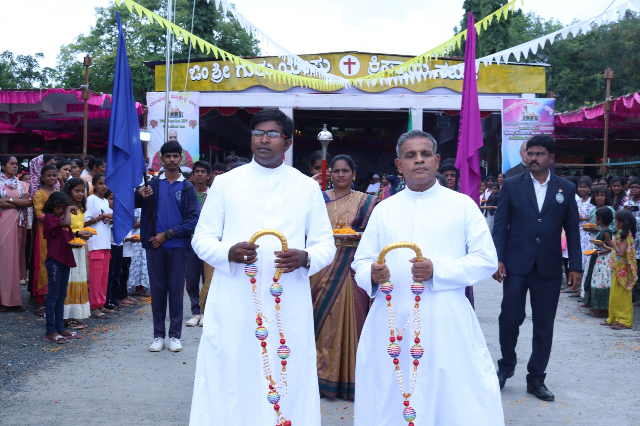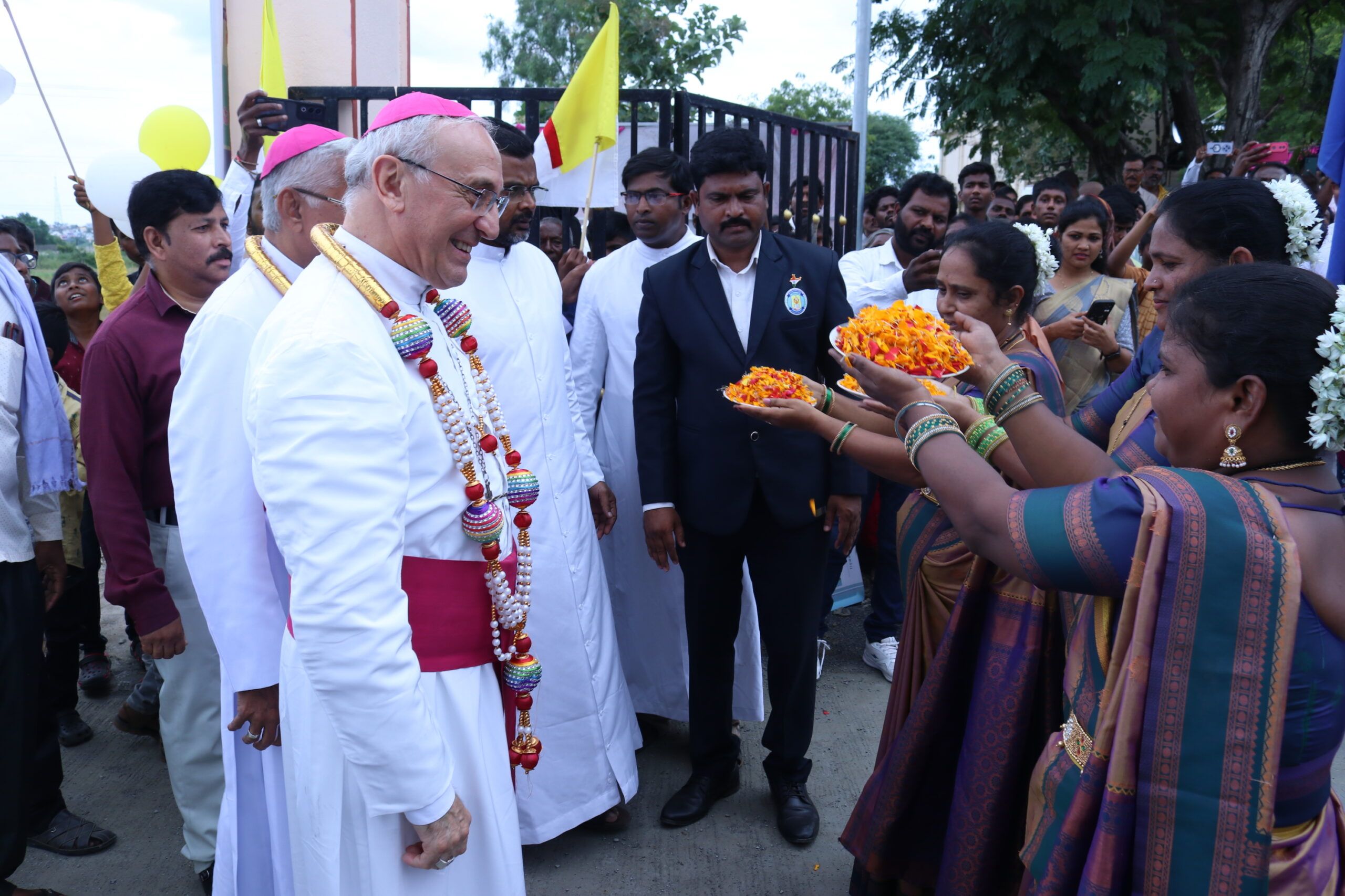 The Nuncio received a solemn and grand welcome with a vibrant bike rally organised by the faithful of Bhalki. The rally began at Shivaji Chowk and concluded at the Shrine, accompanied by songs of praise and the waving of flags — a symbol of faith and devotion.