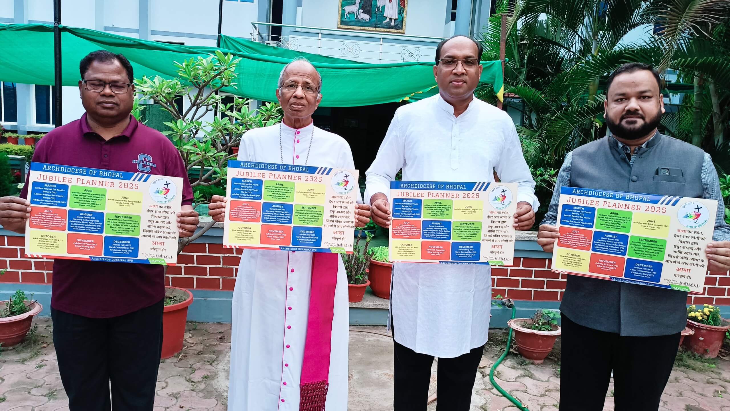 Bhopal, March 21, 2025— The Archdiocese of Bhopal officially launched its Jubilee Planner 2025 during an event held at the Diocesan Pastoral Center in Bhopal on March 20, 2025. The planner was released by Archbishop Durairaj SVD in the presence of the Vicar-General of the archdiocese, Fr. Ishwardas Minj; Diocesan Jubilee Coordinator Fr. Thomas Philip; and Diocesan P.R.O. Fr. Alfred D'Souza.