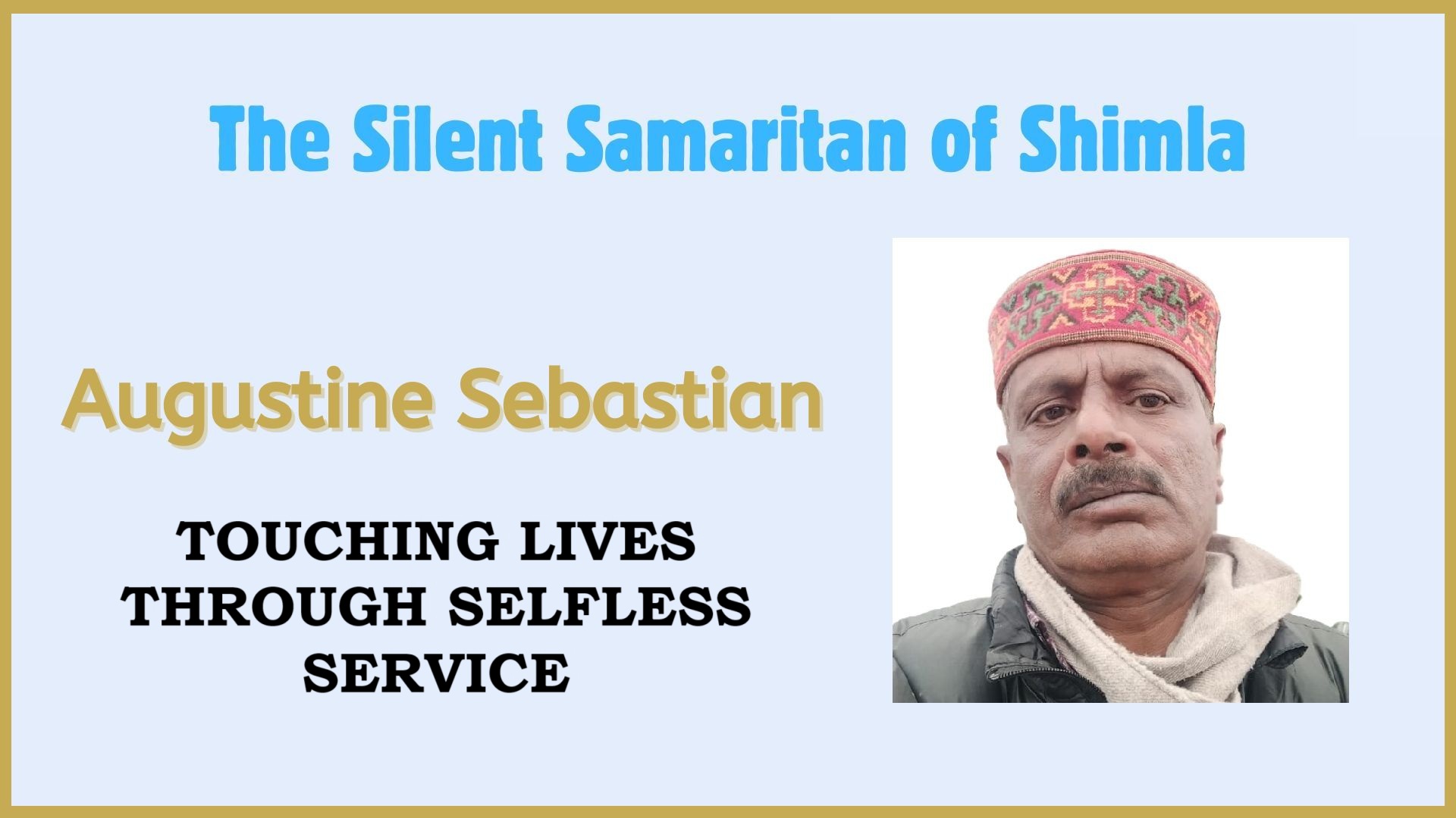 In the winding lanes of Shimla lives a man whose quiet actions speak volumes. Augustine Sebastian, a retired health counsellor, is a beacon of hope for the poor, the elderly, and the underprivileged of the city. He has dedicated the second innings of his life to supporting those in need in whatever way he can.