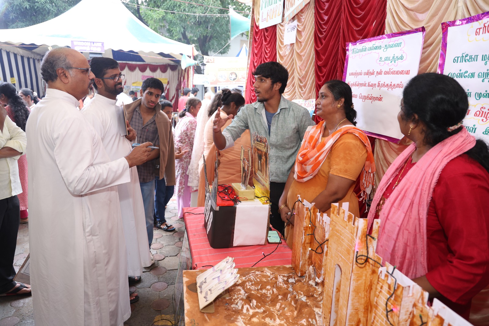 The exhibition was inaugurated by Fr. Vincent Chinnadurai, Parish Priest of the Cathedral. The various pavilions were evaluated by Fr. D. J. Sagayaraj, Principal of St. Bede’s School, and Fr. John Moses, Assistant Parish Priest.