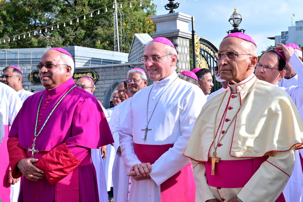 A felicitation programme was held under the presidency of Bishop Leopoldo Girelli, Apostolic Nuncio to India and Nepal. The event also paid a heartfelt tribute to Bishop Bernard Moras, who had faithfully served as the apostolic administrator of Mysore since January 2023, guiding the diocese during its period of transition.