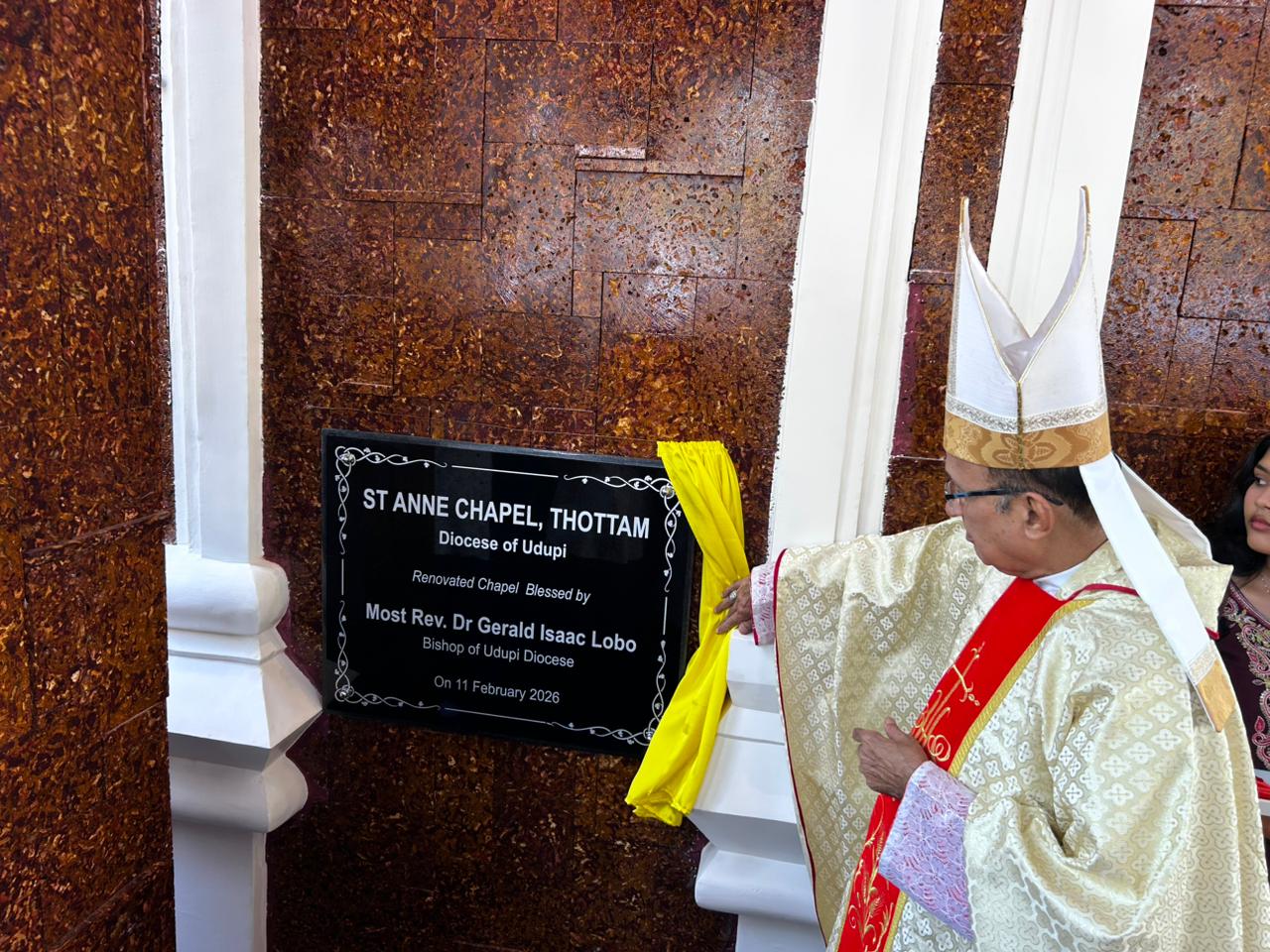 Udupi, Feb. 12, 2026: The renovated St. Anne Chapel at Thottam was solemnly inaugurated and blessed on Wednesday by Bishop Gerald Isaac Lobo, Apostolic Administrator of the Udupi Catholic Diocese, in a ceremony marked by prayer, solemnity and a call to renewed spiritual commitment.