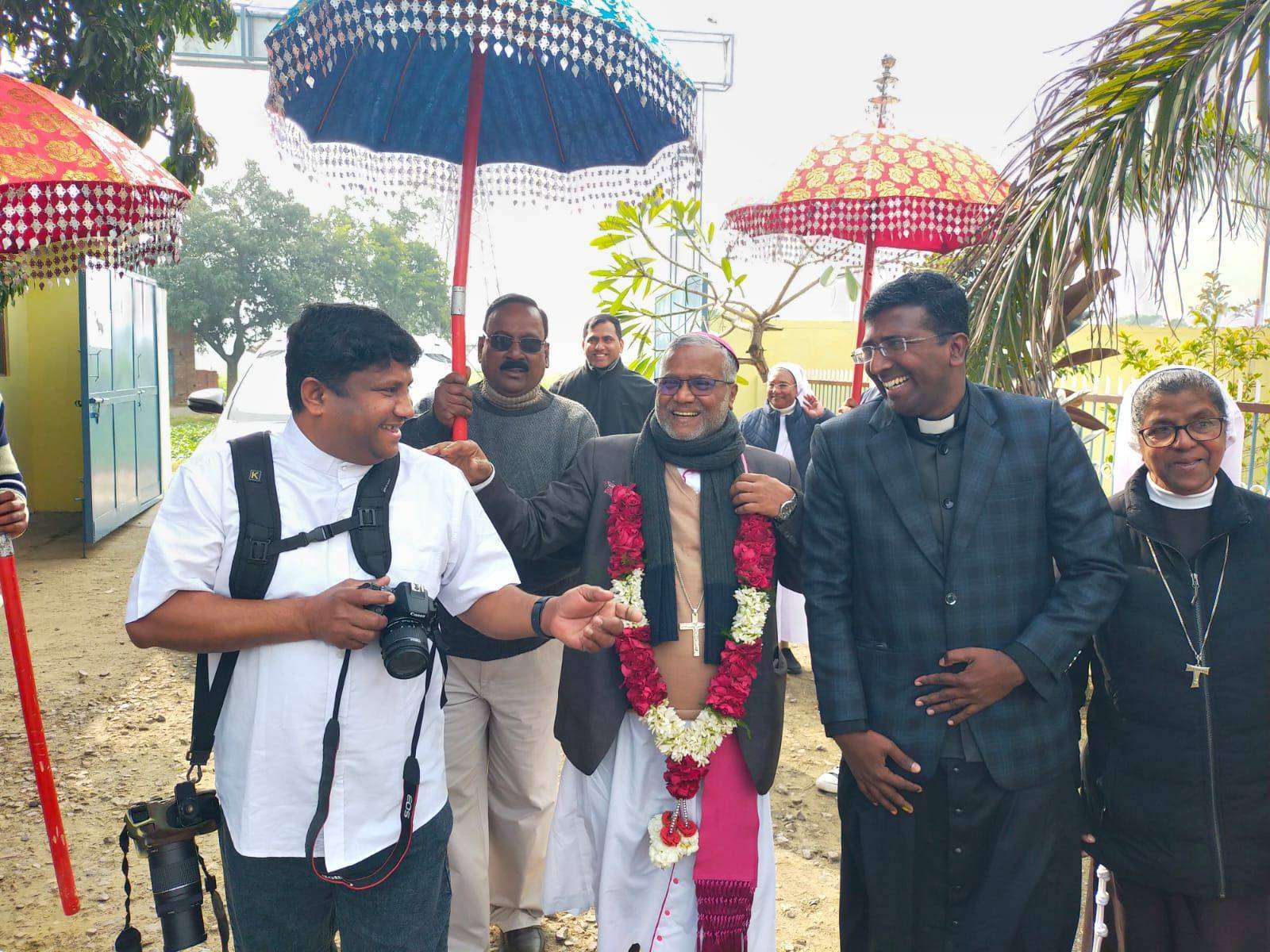 An important moment for the parish preceded the feast with the blessing of the new Prayer Hall on 31st January 2026 by Fr. Sebastian Panthaladi, in the presence of Fr. Shaji, Financial Administrator of the Archdiocese of Agra, Fr. Ashish, Fr. Viniversal D’Souza, and the parishioners.