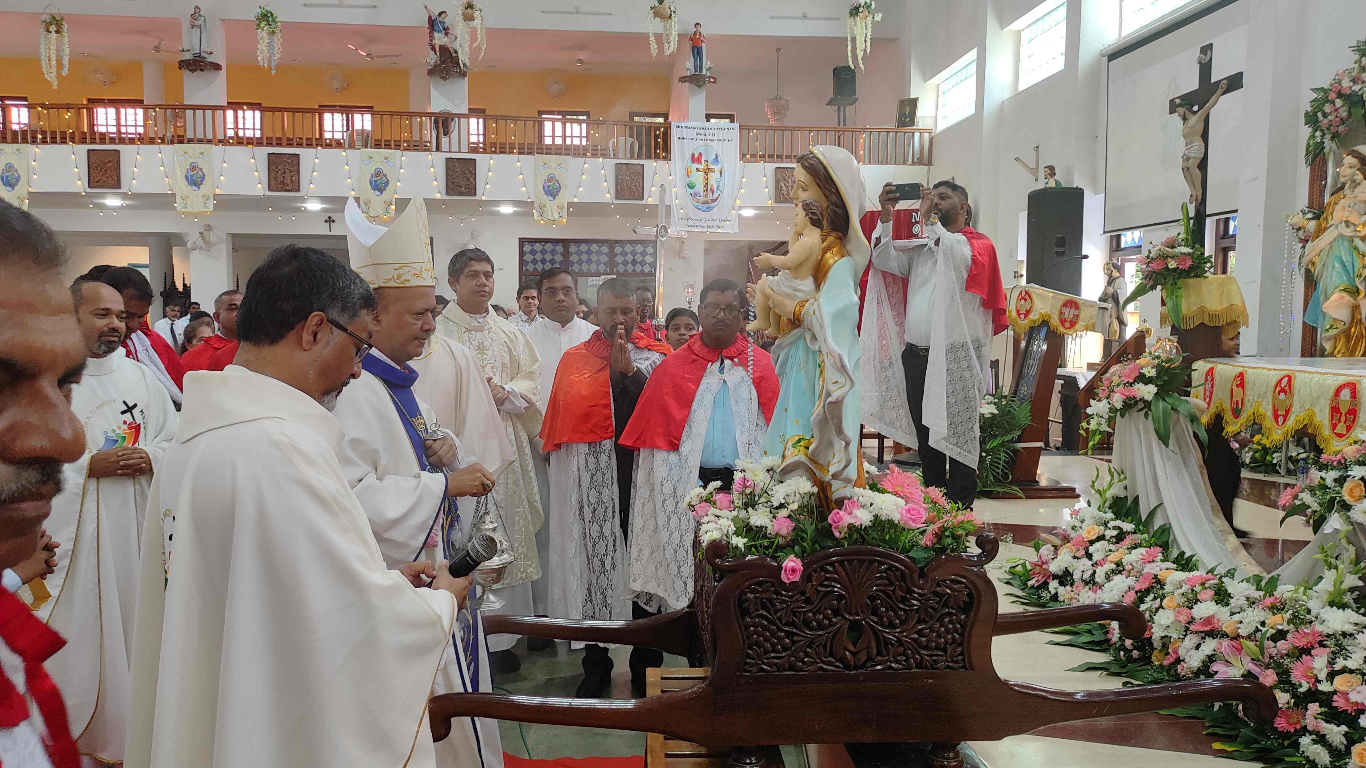 In his homily, Bishop Fernandes reflected on the twin significance of the day — the Feast of Our Lady of the Rosary and the Jubilee of Social Communications Media. He highlighted five dimensions of Mary’s communication: through words, good deeds, thoughts, silence, and fellowship. He encouraged the faithful to become messengers of hope in their families, parishes, and communities. “The Rosary is a beautiful instrument that helps us communicate with God through prayer,” he said, urging all to use modern media — mobile phones, television, the internet, and print — to spread messages of hope.