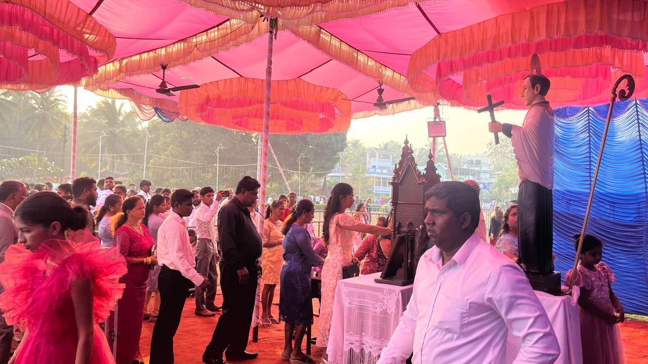 The Eucharistic celebration was concelebrated by Archbishop Filipe Neri Cardinal Ferrão, Archbishop of Goa and Daman, along with several bishops and priests. The feast celebrations included eight Masses at the venue, including a special Mass at the Oratory of St. Joseph Vaz at noon.