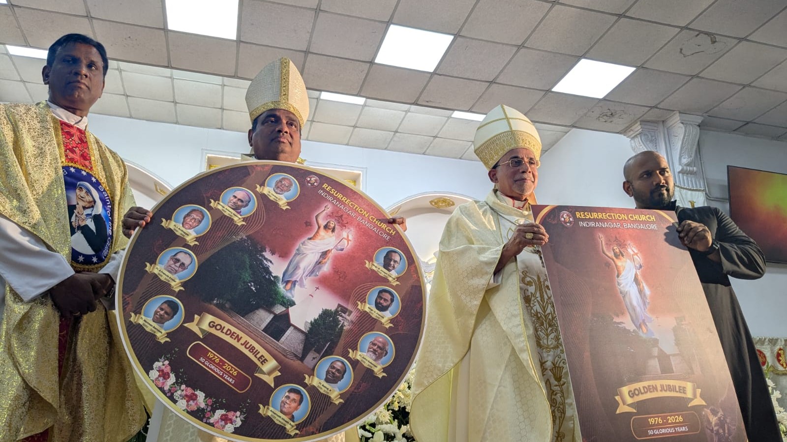 Towards the end of liturgy, the Golden Jubilee logo of Resurrection Church was formally unveiled by Cardinal Filipe Neri and Cardinal Poola Anthony, marking a significant milestone in the parish’s history.