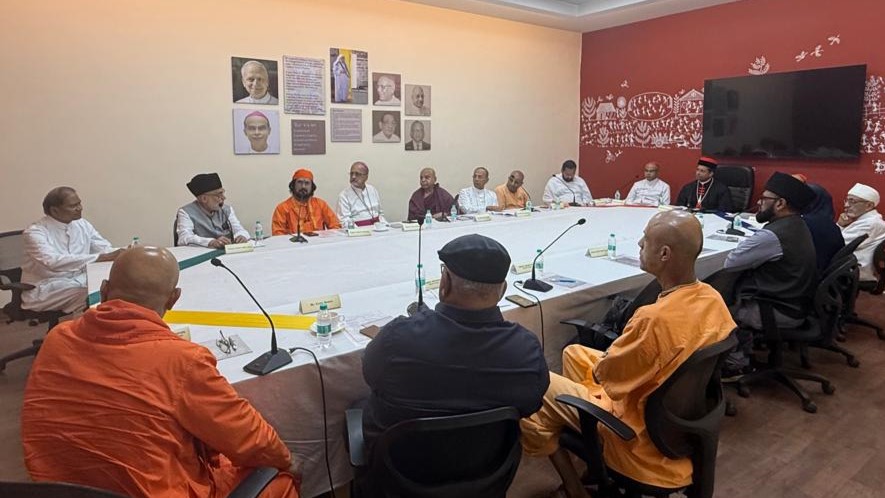 The event featured an intimate interaction among leaders from multiple religious traditions, including Archbishop John Rodrigues, Cardinal Oswald Gracias, Mar Thomas Elavanal MCBS, Swami Dayadhipananda of Ramakrishna Mission, and Dr. Surinder Kaur representing the Sikh community, among others.
