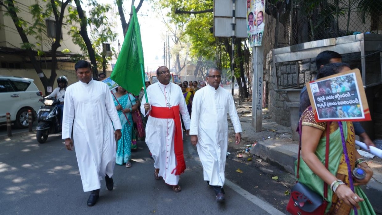 The rally was inaugurated and flagged off by Cardinal Poola Anthony, Archbishop of Hyderabad and chairman of HASSS. Waving a green flag bearing the message “Go Green – Grow Earth,” the Cardinal launched the march that covered nearly five kilometres through the central streets of Secunderabad.
