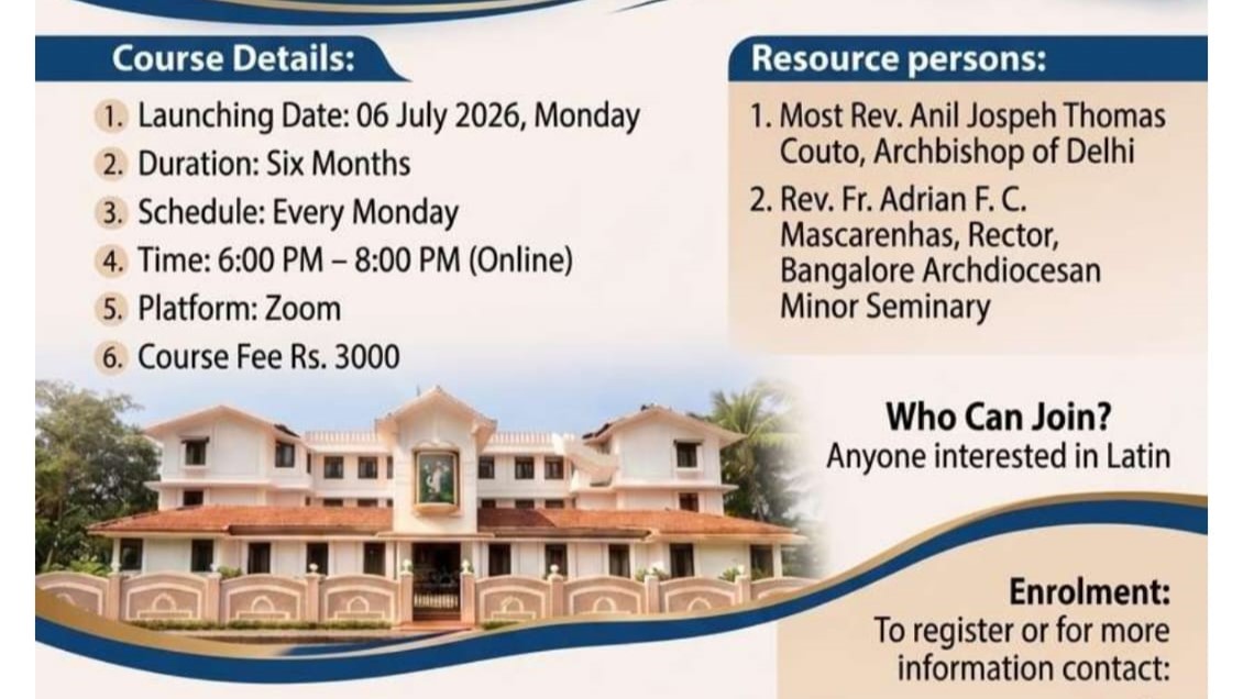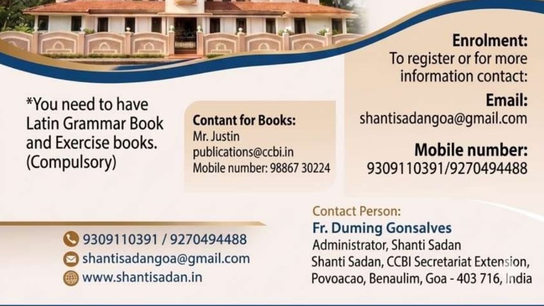 Goa, April 8, 2026: In a move aimed at reviving interest in classical ecclesiastical language studies, the Conference of Catholic Bishops of India (CCBI) has announced an Online Basic Latin Certificate Course to be conducted by its Extension Secretariat at Shanti Sadan, Benaulim, Goa.