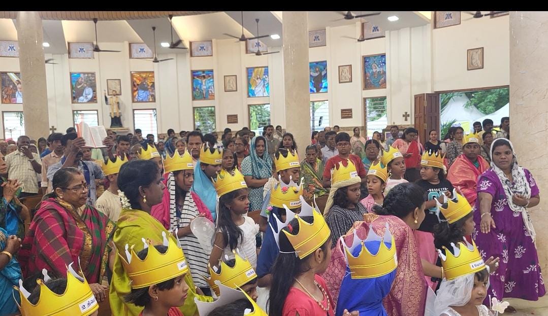 மாலை திருப்பலியை அருள்பணி உபால்டஸ் சுந்தர் அவர்கள் நிறைவேற்றினார்கள்.நிறைவில் கலைநிகழச்சிகள், விவிலிய வில்லுப்பாட்டு, விவிலிய கதாபாத்திரங்களில் மறைக்கல்வி மாணவர் அழகு நடை நடந்து வந்து மகிழ்வளித்தனர்.