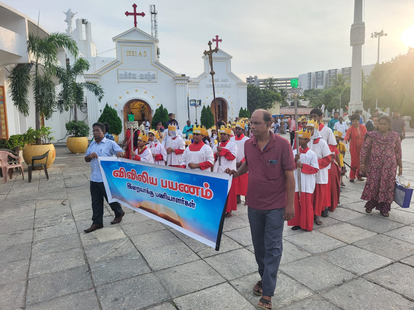 மாலையில் விவிலியப் பயணம் என்ற தலைப்பில் விவிலிய தேர்பவனி நடைபெற்றது. சிறுவர்கள் அனைத்து விவிலிய நூல்களின் பெயர்களைத் தாங்கிய காகித கிரீடப் பட்டை அணிந்து பவனியில் நடந்து வந்தனர்.
