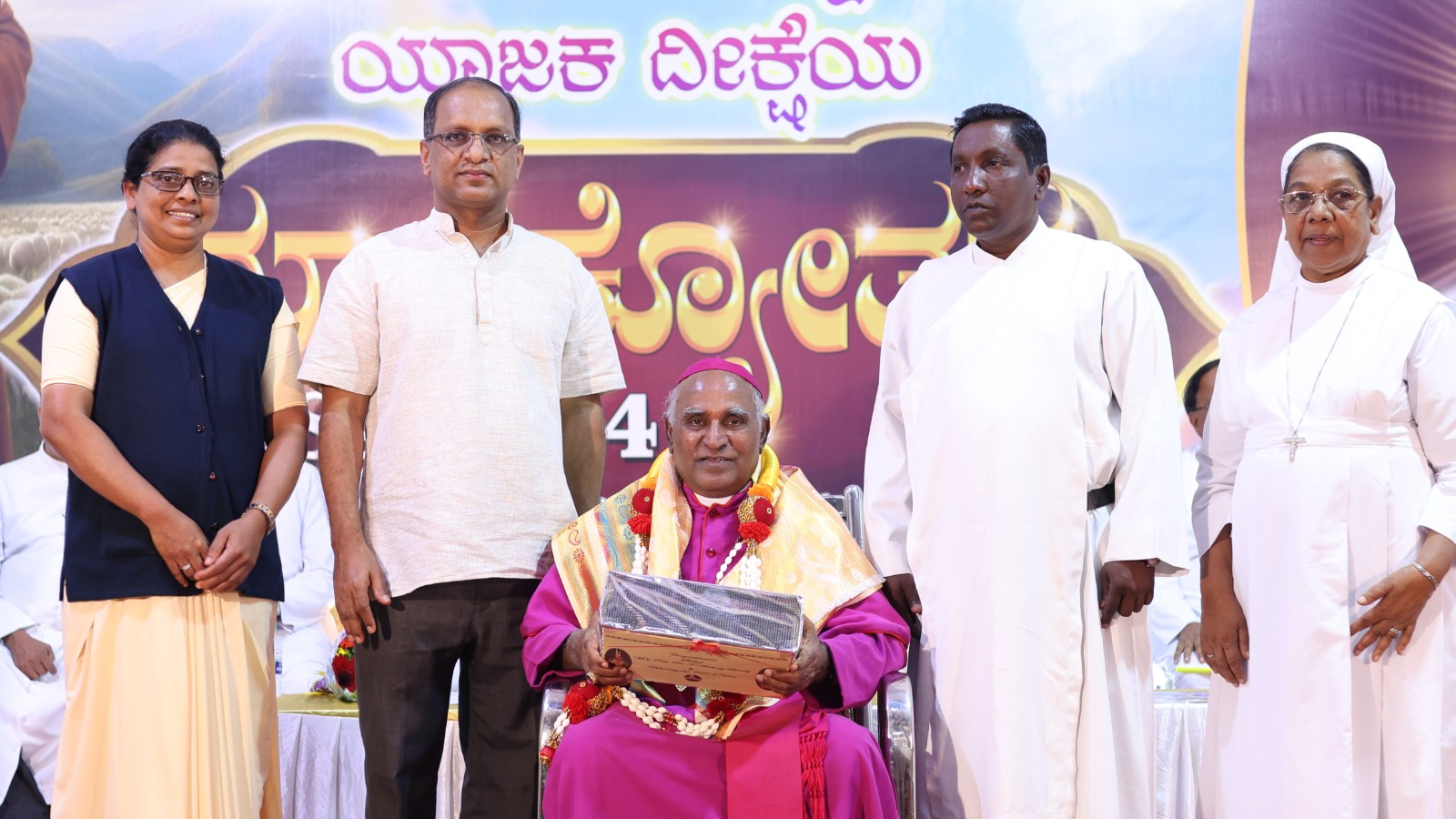 The day’s events included a Thanksgiving Eucharist presided over by Bishop Swamy with Fr. Madtha concelebrating, as the diocese gathered to express their gratitude for 40 years of dedicated priestly service. There were 82 priests present for the celebration and around 1600 people were present for the Eucharistic celebration and for the felicitation programme.