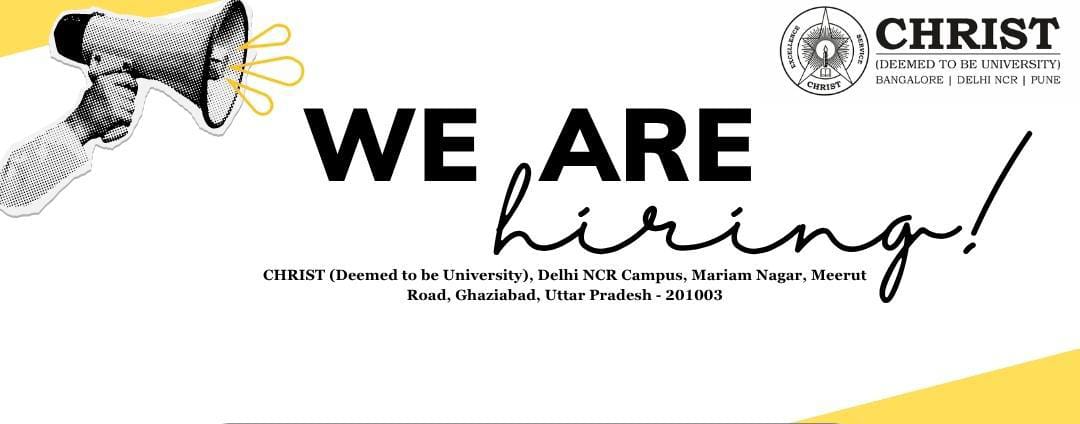 Ghaziabad, Nov 5, 2025: Christ (Deemed to be University), Delhi NCR Campus, has announced multiple job openings across academic and administrative roles.