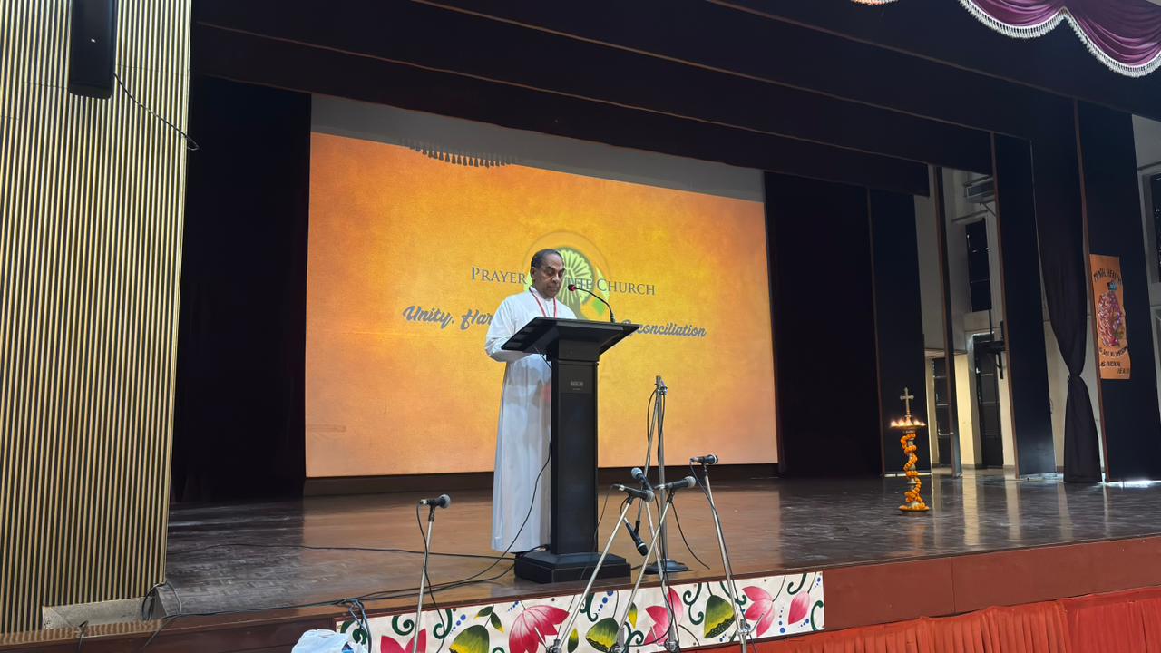 A particularly moving moment came with the chanting of the Nicene Creed in Syriac by Fr. Afilash of the Malankara Orthodox Syrian Church, commemorating 1,700 years of this historic symbol of Christian unity. Prayer dances by students and the BEC Commission, hymns by choirs from Caleb Institute, Salvation Army, Prateeksha Seminary, and the Burmese Christian community, along with a short dance drama by Chethanalaya, creatively highlighted care for Mother Earth, demonstrating that prayer for peace includes responsibility for creation.