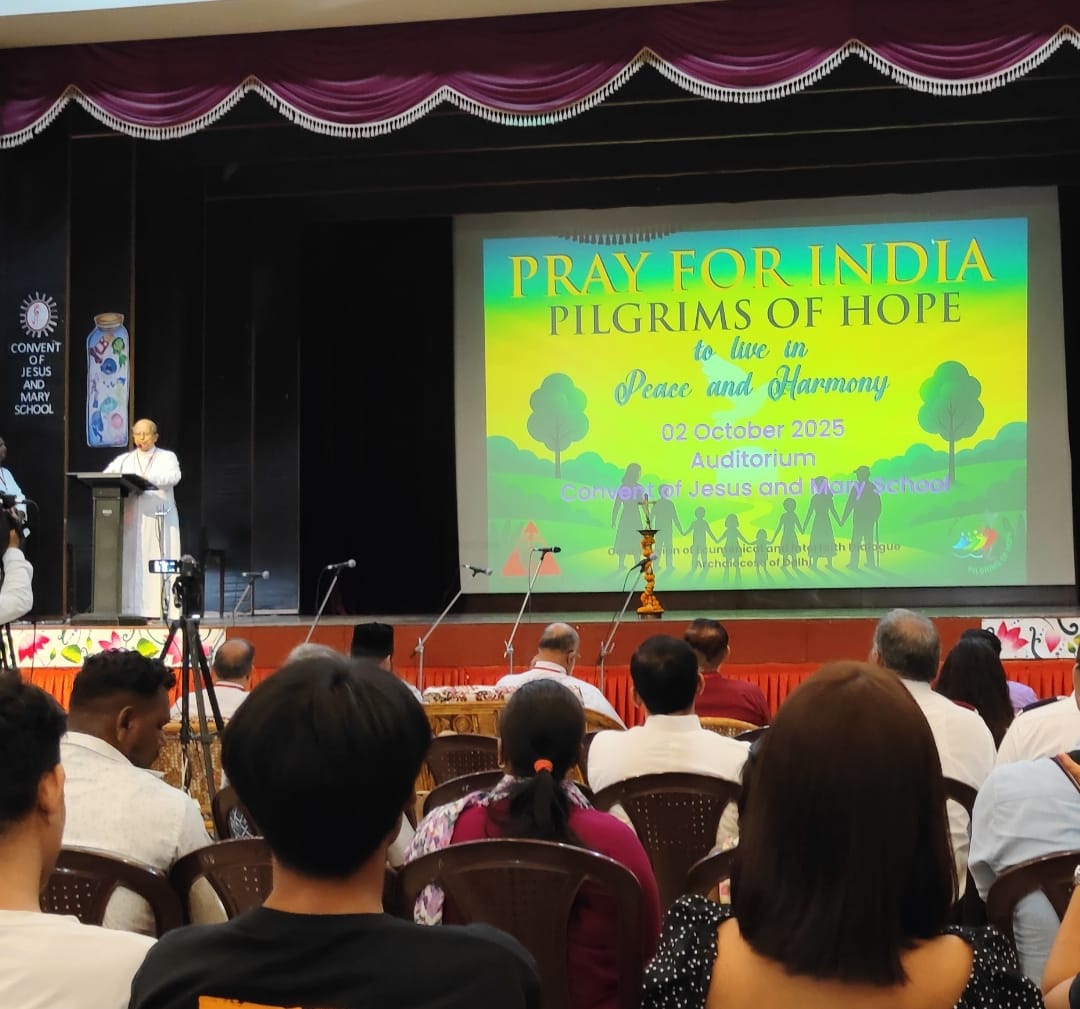 New Delhi, October 2, 2025: Nearly 700 Christians from across Delhi gathered at the Convent of Jesus and Mary, Gole Dak Khana, on Gandhi Jayanti for “Pray for India – Pilgrims of Hope”, an ecumenical day of prayer hosted by the Delhi Commission for Ecumenism as part of the Jubilee Year 2025 of Jesus Christ. The event, led by Catholic bishops and leaders from other Christian denominations, aimed to promote peace, unity, and care for creation through prayer and fellowship.