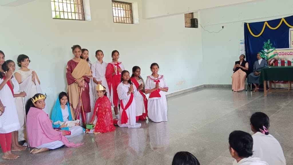 As part of the programme, Sisters Rita Shanthi SCB, Shobhana SCB, Cynthia SCB, Rose Maria and Elize Lurdh SCB, along with school staff and students, presented Christmas carols, skits and dance performances. Sr. Rita Shanthi and Sr. Shobhana also spoke on the significance of Christmas, explaining the biblical account of the birth of Jesus in Bethlehem, the symbolism of the crib, the visit of the shepherds and the Magi.