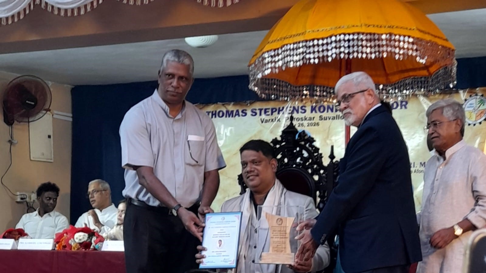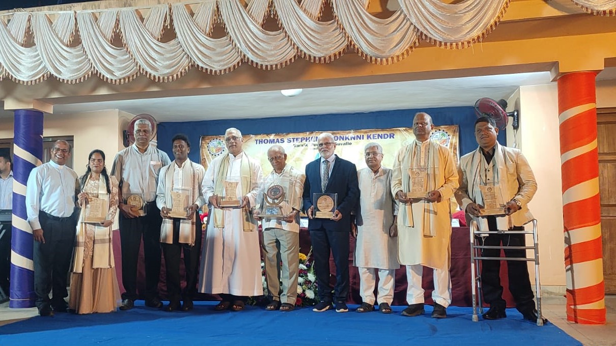 The Antonio Pereira Konknni Puroskar 2026 was conferred on Br. Eusebio Miranda SFX, Editor of Vauraddeancho Ixtt. Edwin Fernandes received the Dr Jack Sequeira Konknni Puroskar. The Maria Afonso Konknni Puroskar was awarded to Fr. Milagres Dias. Tancia Pires received the Valerio Konknni Puroskar. The Fr. Casmiro D’Melo Konknni Puroskar was conferred on Fr. Gabriel Coutinho, while the Martyr Floriano Vaz Konknni Puroskar was awarded to Fr. Eusebio Gomes SFX.