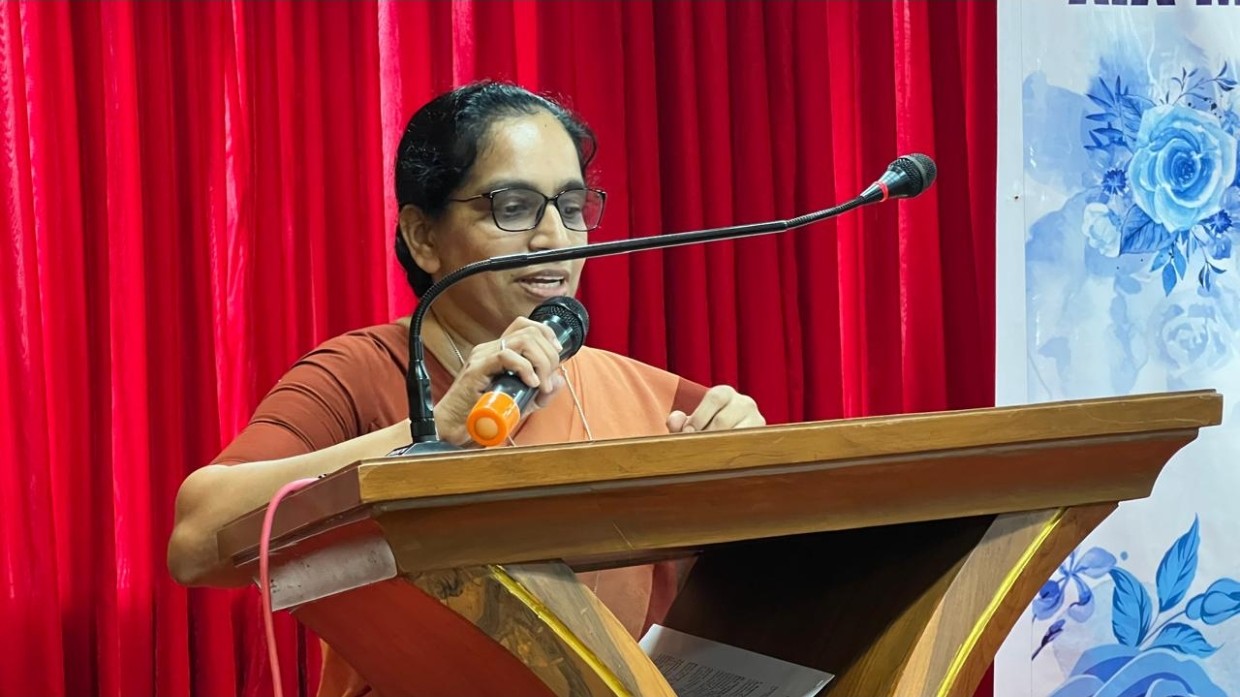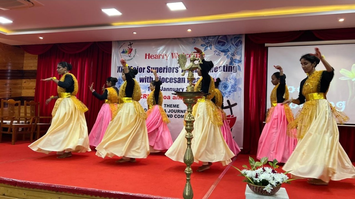 The gathering began with the lighting of the traditional lamp by Simião Fernandes, Auxiliary Bishop of Goa and Daman, in the presence of Sr. Fatima Rodrigues FMCK, Superior General of FMCK; Fr. Joaquim Fernandes SVD, Episcopal Vicar for the Religious; Sr. Faria Barretto HC, Superior General of the Congregation of the Handmaids of Christ; Fr. Gabriel Fernandes OFM Cap., President of CRI (Goa Unit); and Sr. Daisy Kunnathuparambil JMJ, Vice-President of CRI (Goa Unit).