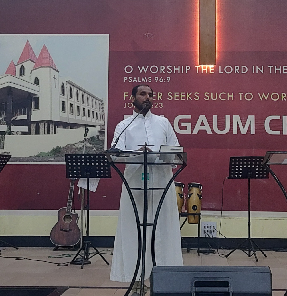 The Gospel passage, recounting the healing of the man with a withered hand (Mk 3:1-6), was read by Pastor Sebastian. Rev. Fr. Harry Victor D’Cruz, Principal of Vidya Mandir High School and Parish Priest of Sacred Heart Church, Madanbhavi, delivered the day's message, emphasizing the need for unity. He spoke of how humanity has been divided on the basis of religion, not by the design of God, but as a consequence of sin.