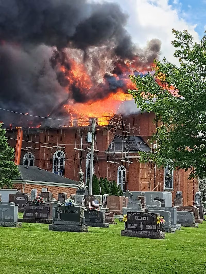 Ohio, 30 May 2025: A fire broke out at St John the Baptist Church in Maria Stein, Ohio, on Thursday afternoon, causing significant damage to the historic structure. The local fire department received the emergency call at approximately 2:30 p.m. local time. The following message was issued this afternoon by Archbishop Robert G. Casey to the parishioners of St John the Baptist Church in Maria Stein, Ohio: