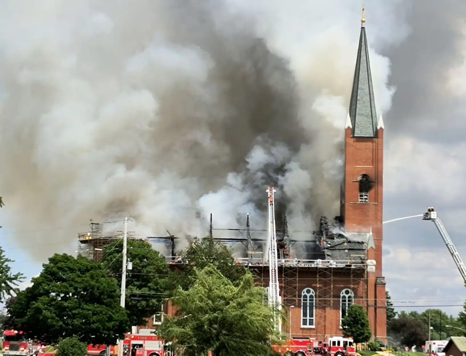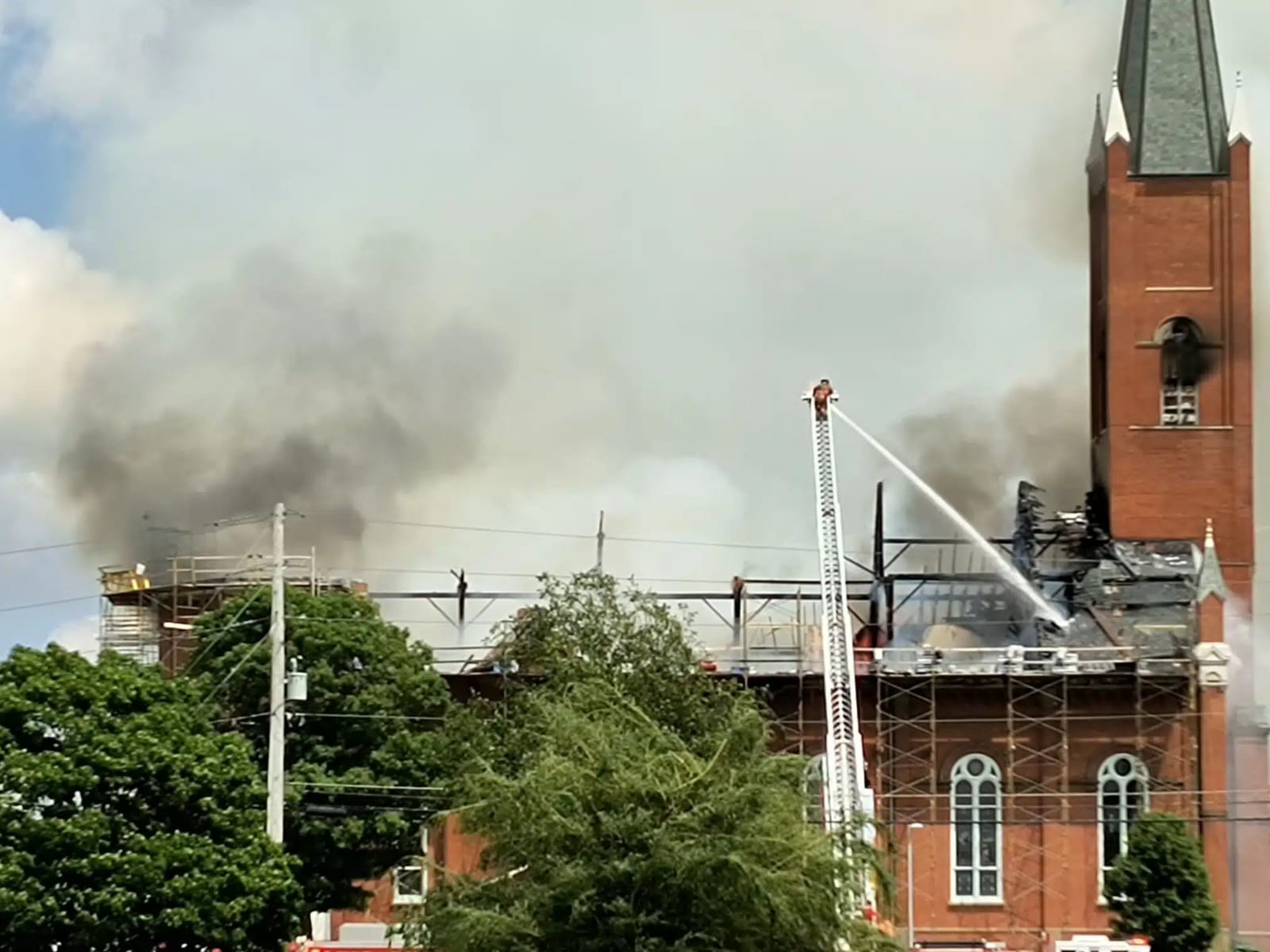The cause of the fire remains under investigation, and no injuries have been reported at this time. Authorities and church officials are assessing the extent of the damage to the building.