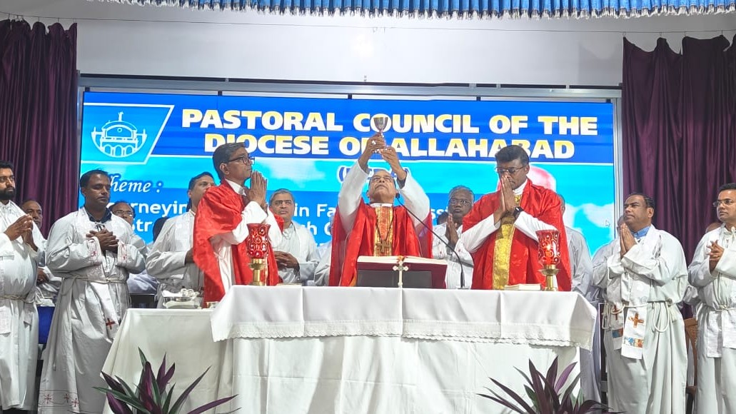 Prayagraj, October 28, 2025 — The Pastoral Council of the Diocese of Allahabad (PCDA) gathered at St. Joseph’s College, Prayagraj in Allahabad for a diocesan-level assembly focused on strengthening parish communities for mission and evangelization. The event, attended by around 145 clergy, religious and lay faithful, was held under the theme “Journeying Together in Faith and Mission: Strengthening Parish Communities for Evangelization.”