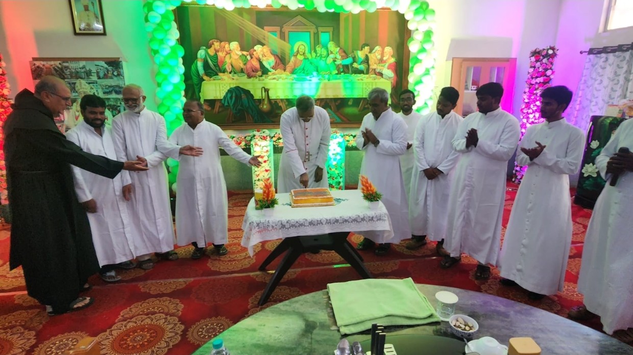 The celebrations commenced at the Bishop's House, where clergy, religious, and diocesan staff gathered for a felicitation programme organised by Vicar General Fr. David Arulappan. Bishop Johannes was warmly honoured with a shawl, floral tributes, and a cultural presentation. Responding to the greetings, the Bishop expressed gratitude for the support of the diocesan community and reaffirmed his dedication to the spiritual and pastoral growth of the local Church.