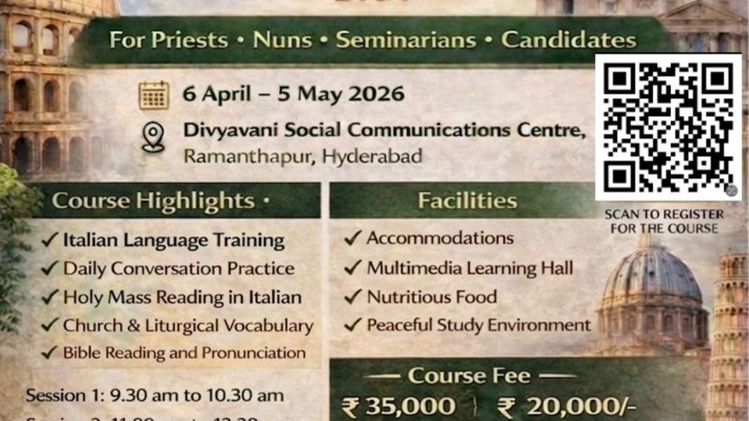 The initiative, organised under the auspices of the Telugu Catholic Bishops' Conference, is tailored for priests, women religious, seminarians, and candidates preparing for studies or pastoral ministry in Italy. The course will focus on developing practical communication skills, with special emphasis on daily conversation, pronunciation, liturgical expressions, Holy Mass readings, and Scripture reading in Italian.