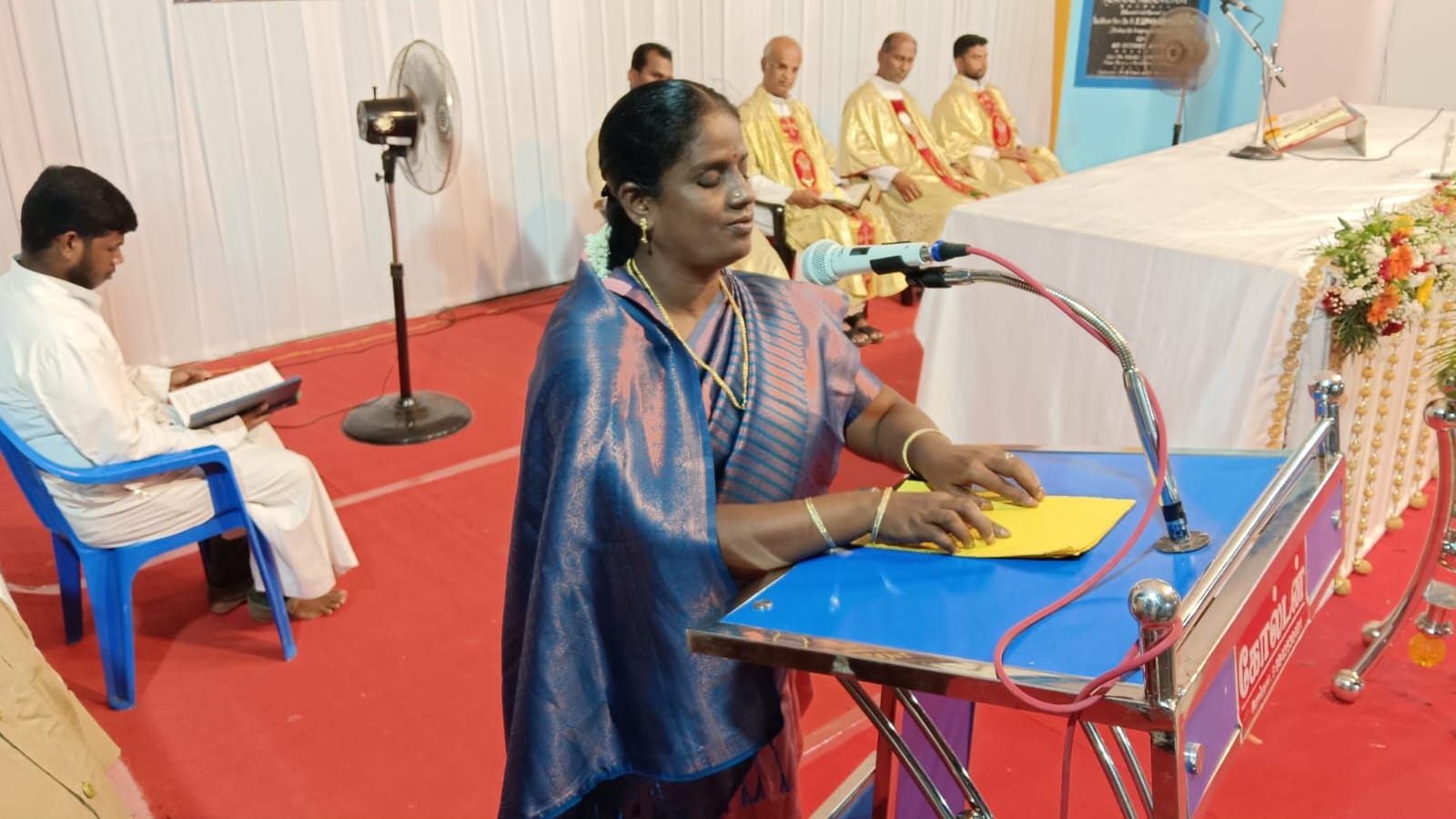 Though initially hesitant to read before a large gathering, she found encouragement from her husband, Motcha Prakasam, who urged her to see the opportunity as a moment of witness. The couple later shared that while they could have recited the passage from memory, they deliberately chose to prepare and read it in Braille as an act of gratitude to God and as a sign of encouragement for others with visual impairments to overcome limitations and participate actively in community life.