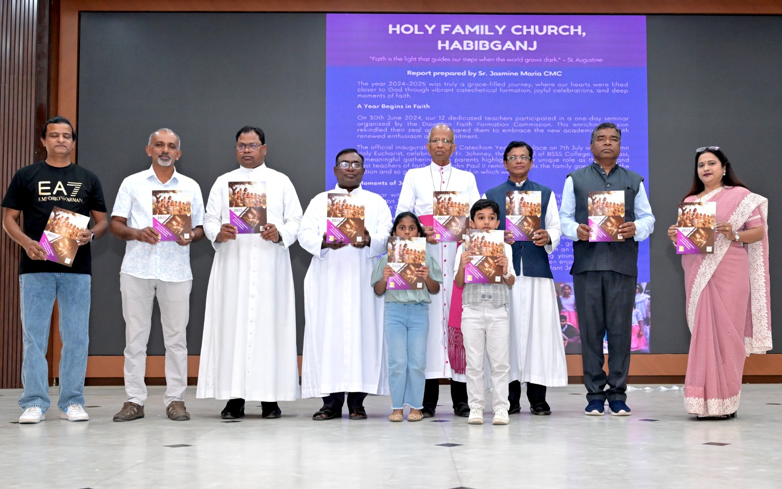 The first copies were presented to clergy, editorial board members, and two children representing the young faithful. This was followed by the felicitation of the Archbishop, dignitaries, and teachers—particularly those honoured for 25 years of service and perfect attendance. families and participants.