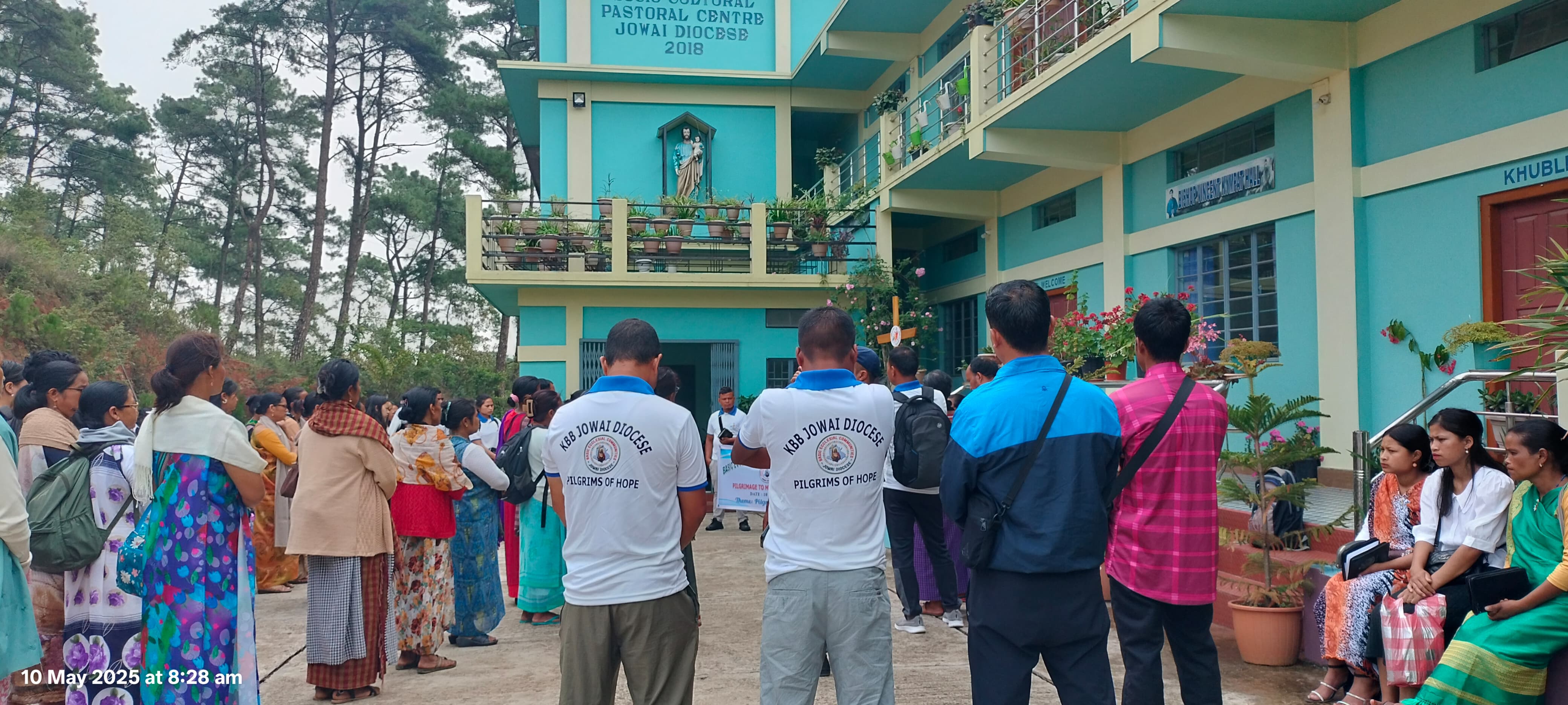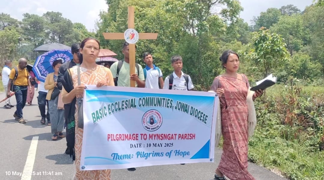 Jowai, 13 May, 2025: The Faith Formation Commission of the Jowai Diocese successfully organised a 27-kilometre walking pilgrimage to Mynsngat Parish, drawing over 200 participants. The event was led by Fr. Manbha Pakem, Diocesan Coordinator for Basic Ecclesial Communities (BECs), and Sr. Sooki Rufina Nongrum, Assistant Diocesan Coordinator for BECs.