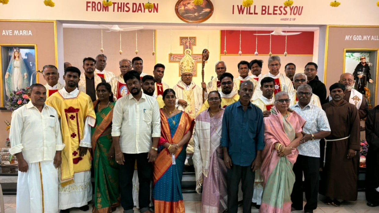 The solemn Eucharistic celebration was presided over by Arockiaraj Savarimuthu, who conferred the diaconate on Br. Sathish Sagavaraj OFM Cap, Br. Raj Mithru OFM Cap, Br. Sagava Selva Godwin OFM Cap, and Br. Arockia Barvin Raj OFM Cap.