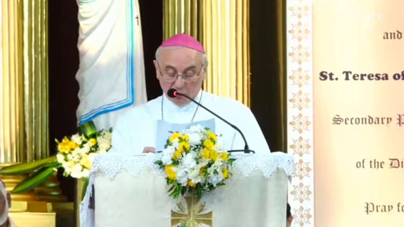 The Bishop-elect was ceremoniously welcomed in a procession before the mass, accompanied by the school band of St. Theresa's Convent High School, Raia.
