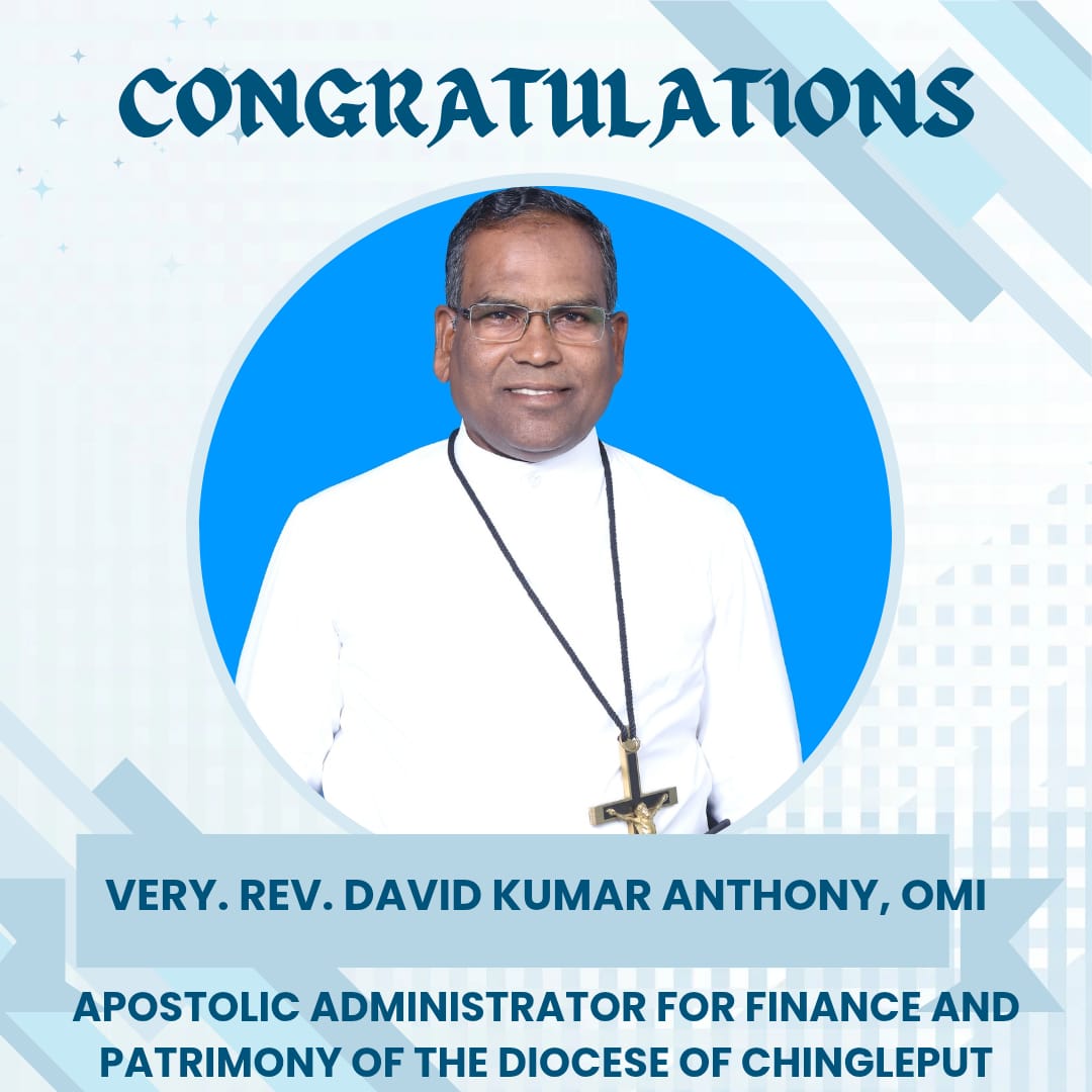 Vatican City, July 22, 2025 - In a significant move to enhance the financial administration of the Diocese of Chingleput, the Dicastery for Evangelization has appointed Fr. David Kumar Anthony, O.M.I., as the Apostolic Administrator in Economic Matters (in re oeconomica). The decree was issued under the authority of His Holiness Pope Leo XIV and signed by Cardinal Luis Antonio G. Tagle, Pro-Prefect of the Dicastery, and Archbishop Fortunatus Nwachukwu, Secretary.