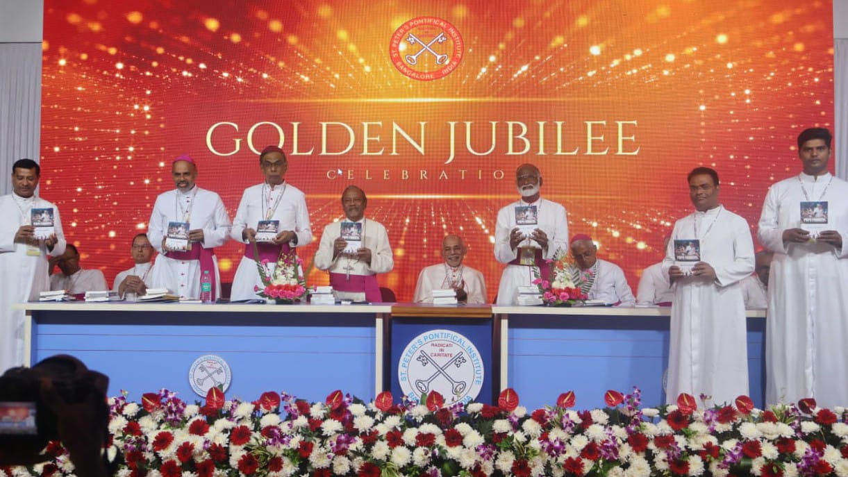 Bengaluru, September 17, 2025 — The Golden Jubilee celebrations of St. Peter’s Pontifical Institute, taking place from 17 to 19 September, witnessed a day marked by prayer, reflection, and academic engagement. The solemn Eucharist was celebrated by His Eminence Filipe Neri Cardinal Ferrão, President of the Conference of Catholic Bishops of India and Archbishop of Goa & Daman.