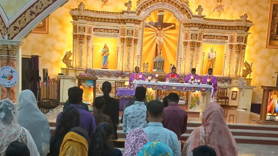Bhopal, 25 March, 2025 – The Matha Maria Samithi of St. Anthony Church organised a spiritually enriching pilgrimage on 24 March, to the Infant Jesus Shrine in Bhopal, drawing a large gathering of faithful. Led by Shrine Rector Rev. Fr. Benito and his team, the event was a deeply moving experience of prayer and reflection.