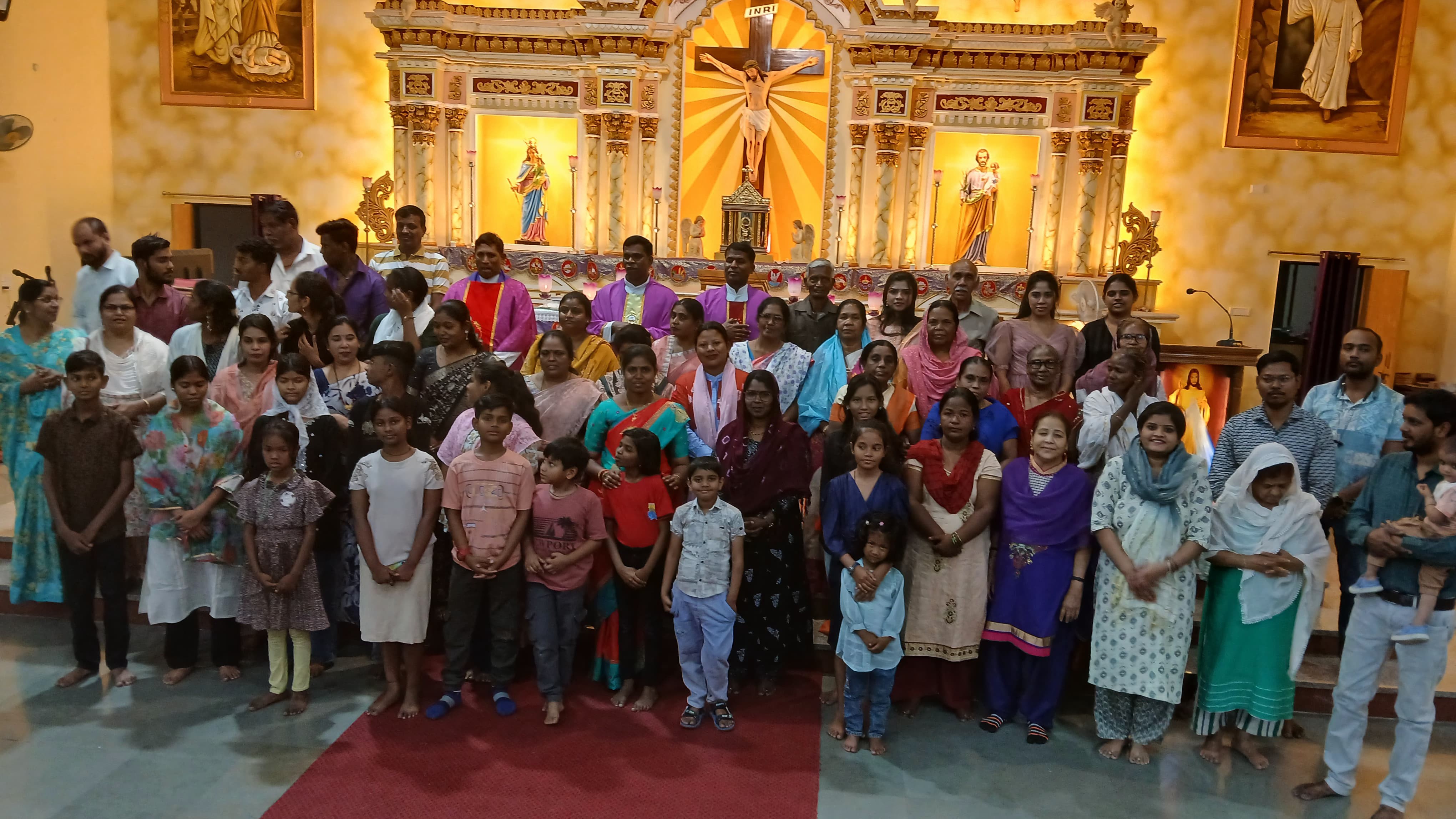 The evening began with the Way of the Cross, as pilgrims walked through the Stations of the Cross, meditating on Christ’s Passion. This solemn devotion set the stage for the highlight of the pilgrimage—the Holy Eucharist, celebrated by Parish Priest Rev. Fr. Emmanuel and concelebrated by Fr. James, Fr. Felix, and Fr. Suresh.