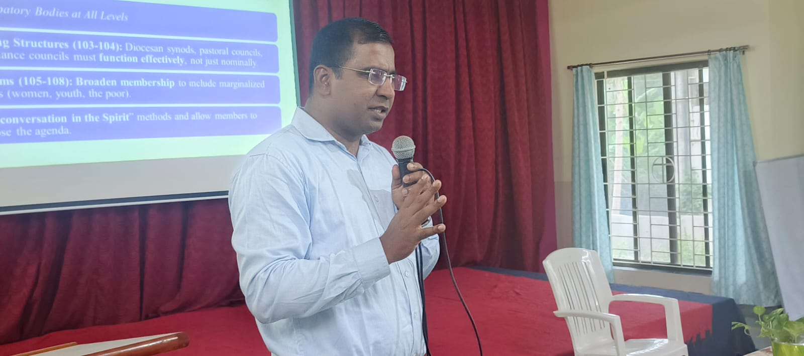 Gulbarga, August 1, 2025 — Approximately 50 diocesan and religious clergy from the Diocese of Gulbarga assembled at Sugyan, the Diocesan Pastoral Centre in Kotnoor, for a day of theological reflection and strategic planning centred on the Final Document on Synodality and its Implementation Pathways. The session, held on July 31, was led by Rev. Fr. Praveen Joy Saldanha, Professor of Systematic Theology at St. Joseph’s Seminary, Jeppu, Mangalore.