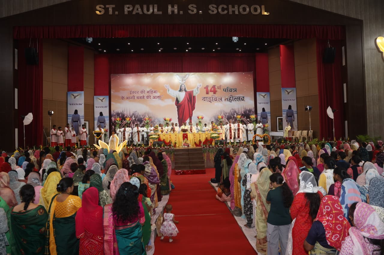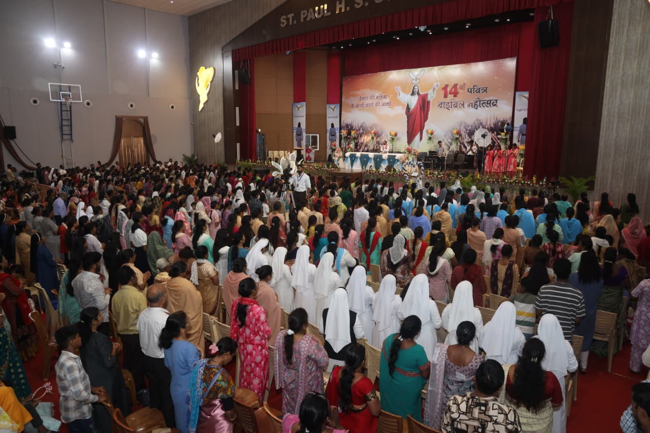 इंदौर, मध्य प्रदेश, 5 अक्टूबर 2025: विश्वास, एकता और भक्ति की एक लहर इंदौर में तब उमड़ पड़ी जब उत्तरी भारत भर से 4,000 से अधिक श्रद्धालु और पादरी 14वें होली बाइबिल महोत्सव — प्रार्थना, उपासना और नवीनीकरण के तीन दिवसीय उत्सव — के लिए एक साथ आए। “परमेश्वर की महिमा को साझा करने की आशा” विषय पर आयोजित इस कार्यक्रम ने शास्त्र और समुदाय की स्थायी शक्ति का उत्सव मनाया, जिससे धर्मप्रांत आत्मिक रूप से समृद्ध हुआ और अपने मिशन में दृढ़ हुआ।