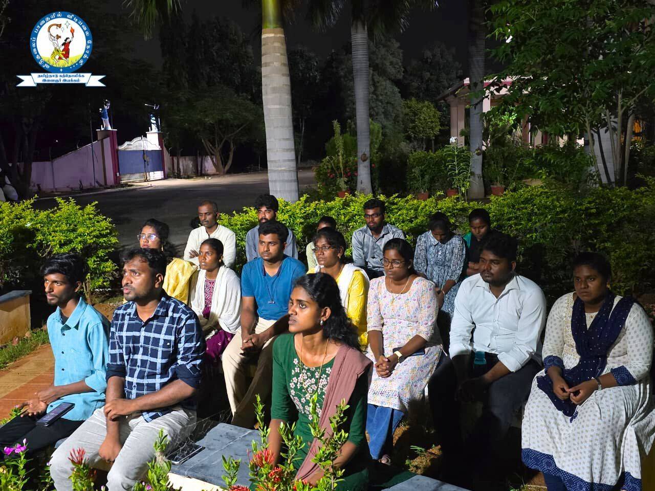 மாலை அமர்வில் "சாதியற்ற தமிழ்ச் சமூகம், சாதியத் தமிழ்ச் சமூகம்" என்ற தலைப்பில் பணி. கும. எடிசன் அவர்கள் தமிழ்நாட்டில் எவ்வாறு சாதி ஊடுருவியது என்றும் சாதியற்ற தமிழ் சமூகம் எவ்வாறு இருந்தது என்றும் இன்றைய அவல நிலை குறித்தும் எடுத்துரைத்தார். பின்னர் அனைவரும் செபமாலை செபித்து முதல் நாள் நிகழ்வினை நிறைவு செய்தனர்.