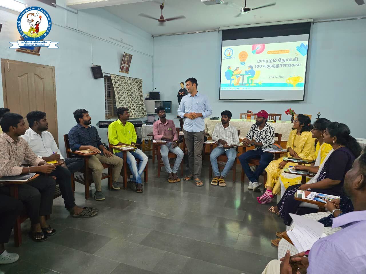 தமிழ்நாடு ஆயர் பேரவையின் இளைஞர் பணிக்குழுவின் ஒரு அங்கமாக தமிழ்நாடு கத்தோலிக்க இளைஞர் இயக்கம் விளங்குகிறது. இந்த இயக்கத்தின் கருத்தாளர் குழு இளைஞர்களை அரசியல்படுத்தி சிறந்த கருத்தாளர்களாக உருவாக்கும் நோக்கத்துடன் "மாற்றம் நோக்கி 100 கருத்தாளர்கள்" என்ற தலைப்பில் பயிற்சிகள் வழங்கி வருகிறனர். ஒவ்வொரு மாத தொடக்கத்திலும் இணைய வழியில் நடைபெறும் இந்த பயிற்சியின் இரண்டாவது நேரடி அமர்வு கடந்த சனி, ஞாயிறு ஆகிய கிழமைகளில் (அக்டோபர் 11,12) நடைபெற்றது.